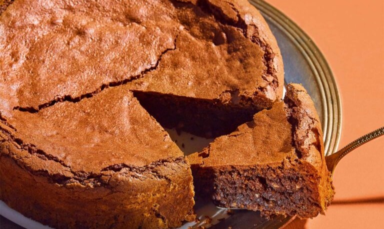 - Αδειάζουμε το μείγμα στο ταψάκι και ψήνουμε για 50-55 λεπτά. Ελέγχουμε αν είναι έτοιμο βυθίζοντας στο κέντρο ένα μαχαίρι: θα πρέπει να βγει με λίγα νωπά ψίχουλα κολλημένα πάνω του.