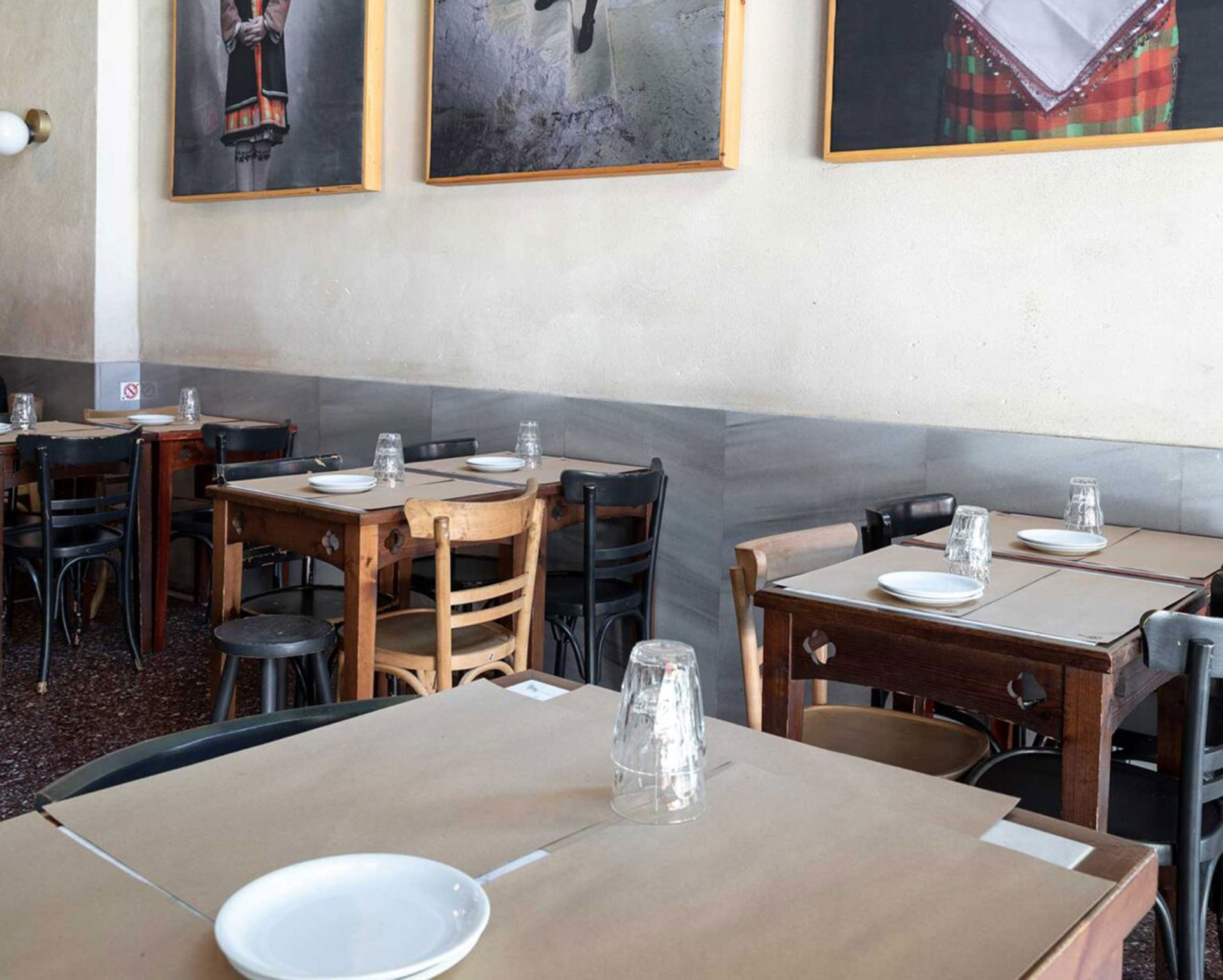 Το 2016 που άνοιξε στο ίδιο σημείο που πριν ο Γιάννης λειτουργούσε το καφενείο ο Πεζοδρόμος, έκανε αίσθηση με την αισθητική του χώρου. Σε στιλ καφενέ, αλλά ορίτζιναλ, χωρίς άλλους καλλωπισμούς πέραν των πελώριων κι εντυπωσιακών φωτογραφικών έργων του Νίκου Βαβδινούδη από την ανθρωποκεντρική συλλογή «Πρόσωπα και Προσωπεία». Στο βάθος η ανοιχτή κουζίνα, αεράτη, συγυρισμένη αλλά ανεπιτήδευτη, και ένας διάδρομος που περνάει από μπροστά της, και συνεχίζει οδηγώντας στο παρακείμενο μαγαζί, σε έναν μικρό, ατμοσφαιρικό χώρο με ένα μεγάλο τραπέζι που στρώνεται με υπαινιγμούς μυστικού δείπνου. Ο ίδιος αυτός χώρος λειτουργεί βοηθητικά, ως ένα είδος pantry (ντουλάπι τροφίμων), και οι λίγοι παρευρισκόμενοι γευματίζουν δίπλα σε σακιά με όσπρια, ζαρζαβατικά και ψυγεία με πρώτες ύλες.