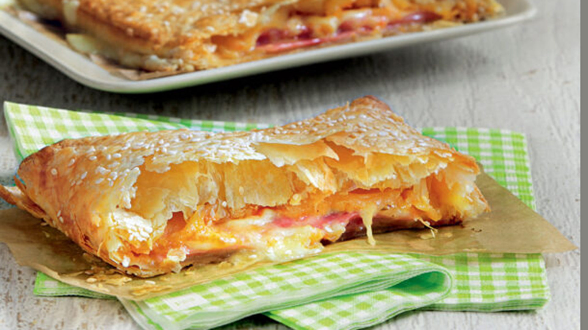 - Επαναλαμβάνουμε τη διαδικασία με το υπόλοιπο ζαμπόν και το υπόλοιπο κασέρι.