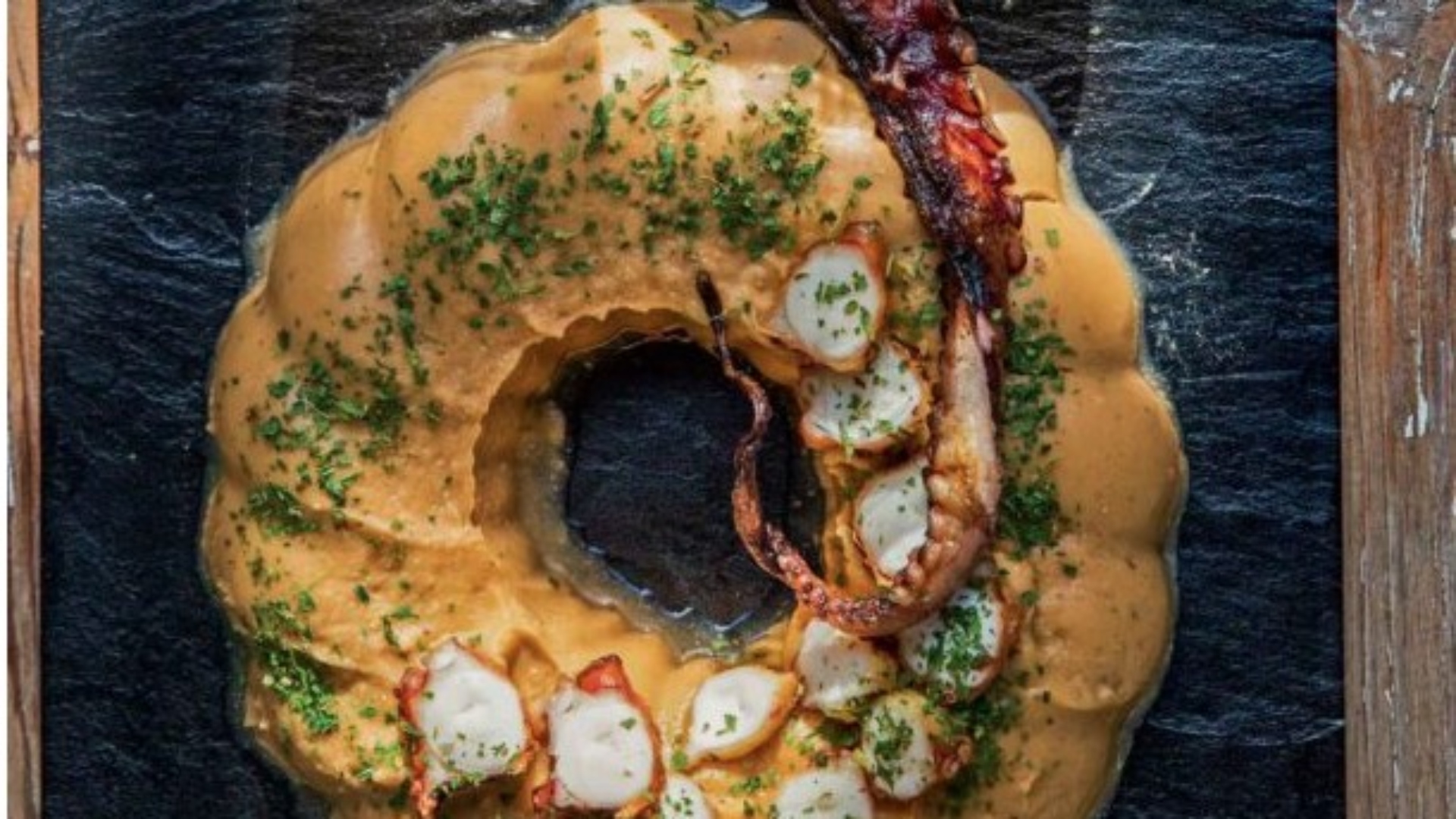 - Σκορπίζουμε ομοιόμορφα το χταπόδι και σερβίρουμε τη ριγανάτη «φάβα» από κόκκινες φακές με ψητό χταπόδι.