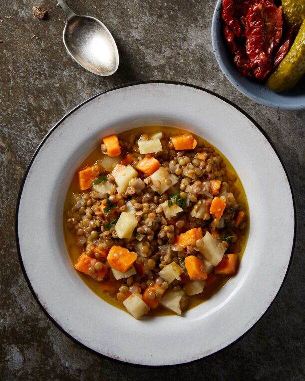 Στην αρχή της εβδομάδας θέλουμε να φάμε κάτι ελαφρύ αλλά δυναμωτικό, θρεπτικό αλλά και γρήγορο, κάτι που να μπαίνει στον φούρνο ή στην κατσαρόλα και, χωρίς να θέλει πολλά-πολλά, να μας χορταίνει και να μας στυλώνει. Οι φακές είναι ιδανικές: οικονομικές, ευκολόβραστες, μια που δεν θέλουν μούλιασμα, είναι ικανές να δώσουν, πέρα από την κλασική σούπα, πολλά διαφορετικά φαγητά ζεστά, χειμωνιάτικα, με νοστιμιά και χαρακτήρα.