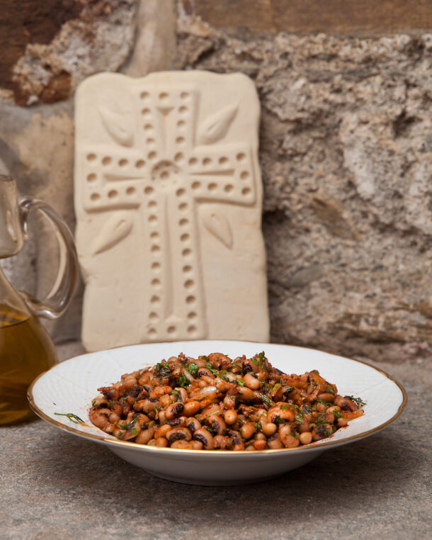 Τα μπαχαρικά δίνουν σε αυτήν τη σαλάτα με μαυρομάτικα, ζωηρό κόκκινο χρώμα και γεύση πικάντικη, ενώ τα μυρωδικά δροσιά και άρωμα.