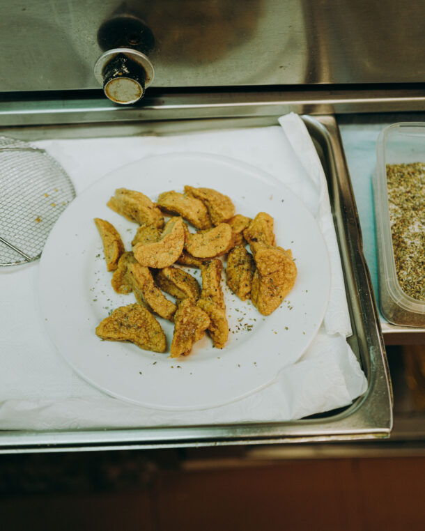 - Τη στραγγίζουμε και αυτή σε χαρτί κουζίνας.