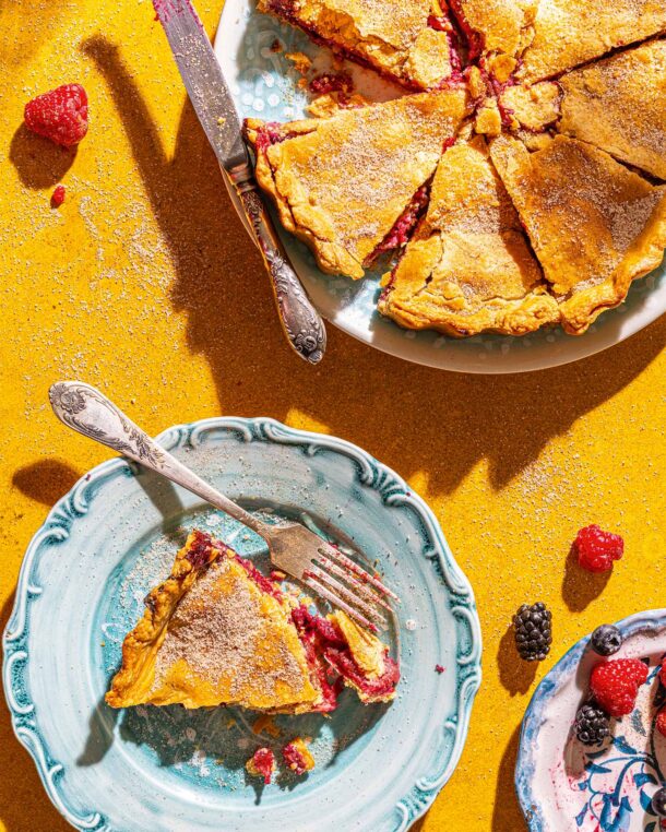Μια μηλόπιτα λίγο διαφορετική, όπου τα μήλα μπλέκουν με μούρα και δίνουν πιο ζωηρό χαρακτήρα στο κλασικό γλυκό. Η ζύμη με ελαιόλαδο κάνει το γλυκό ελαφρύ και ισορροπημένο.