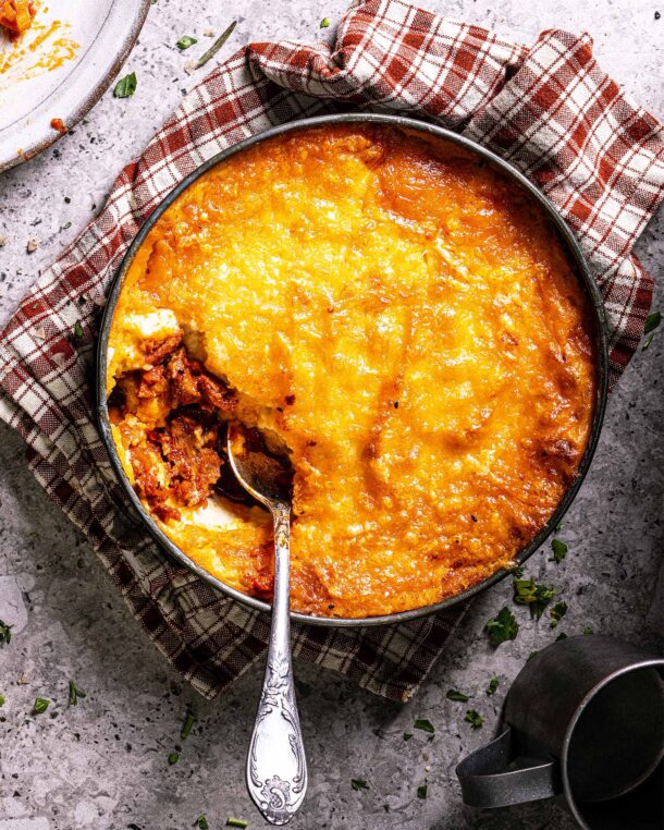 Η διάσημη αγγλική shepherd’s pie με κιμά λουκάνικου γίνεται μια ανεπανάληπτη λιχουδιά, ιδανική για το κυριακάτικο τραπέζι.