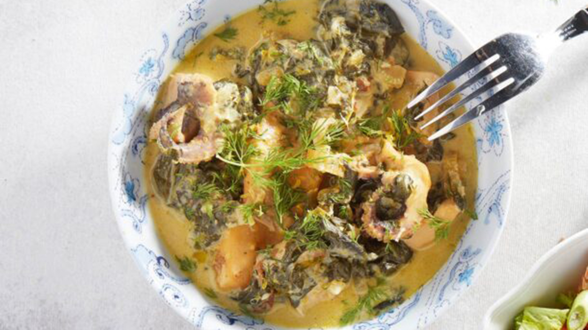- Σκορπίζουμε τον άνηθο και σερβίρουμε τις σουπιές φρικασέ με σπανάκι.