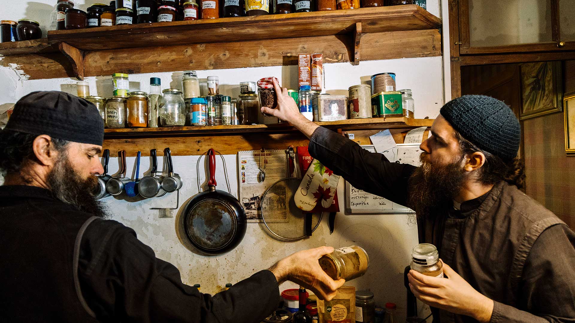 Η αγιορείτικη μαγειρική είναι μια μαγειρική των υλικών, της απλότητας, των σοφών συνδυασμών, μετρημένη, με μεγάλη νοστιμιά. Λαδερά, χορτομαγεριές, όσπρια, ψαρομαγεριές, φαγητά αλάδωτα… Πολλά από όσα σιγοβράζουν και σιγοψήνονται στις κουζίνες των μοναστηριών και των κελλιών του Αγίου Όρους είναι κοινά, με μικρές παραλλαγές. Οι αχνιστοί ταβάδες κουβαλούν πάντα τη μνήμη μιας παμπάλαιας παράδοσης. Επηρεάζονται κάποιες φορές από παλιά και πιο σύγχρονα βιβλία μαγειρικής και από όσα φέρνουν μαζί τους από τους τόπους τους οι μοναχοί βάζοντας στο φαγητό ένα λιθαράκι από τα μέρη στα οποία μεγάλωσαν ή έζησαν – στις επισκέψεις μας στα μοναστήρια του Αγίου Όρους συναντήσει κάποια πιάτα που δεν περιμέναμε, από νηστίσιμη «μαγιονέζα» με αβοκάντο μέχρι σαλιγκάρια γιαχνί με πατάτες σαν… Hasselback. Είναι όμως και κάποια πράγματα χαρακτηριστικά, μια ραχοκοκαλιά από συνήθειες και μυστικά νοστιμιάς που έχουν παγιωθεί με τα χρόνια, που δεν αλλάζουν, και που μπορούμε κι εμείς να χρησιμοποιήσουμε στις μαγειρικές μας. Πρώτο και καλύτερο ανάμεσα σε αυτά, το κρεμμυδόζουμο, χάρη στο οποίο χαιρόμαστε έναν από τους πιο ωραίους μπακαλιάρους τούτου του κόσμου.