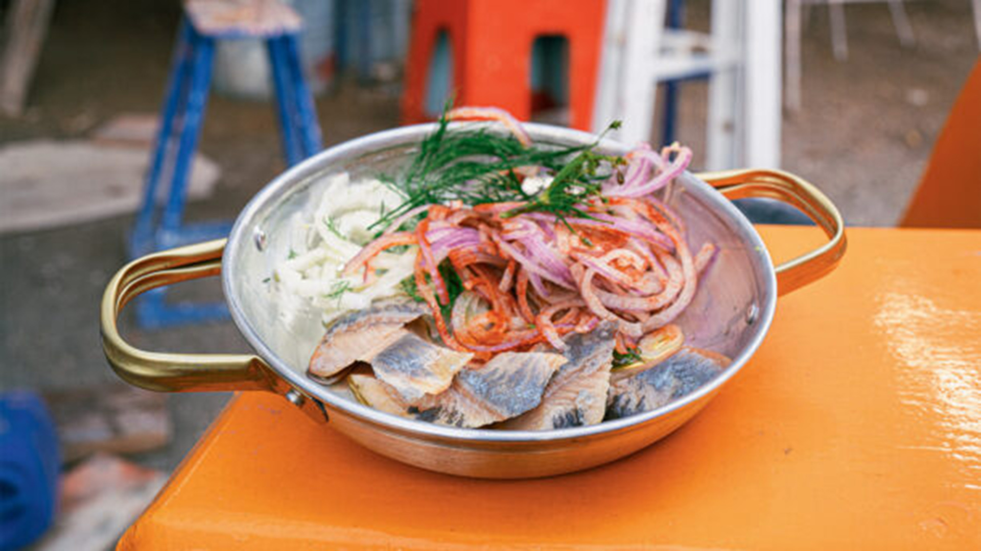 Για το τεύχος του Γαστρονόμου «200 χρόνια Ερμούπολη» στήσαμε τις κατσαρόλες και τα τηγάνια μας σε δύο από τα λιγοστά καρνάγια που απέμειναν στην πρωτεύουσα των Κυκλάδων, εκεί όπου άλλοτε μαστόρευαν μεγαλόπρεπα σκαριά, και μαγειρέψαμε με τον σεφ Θοδωρή Κασσαβέτη, μόνιμο κάτοικο της Σύρου πια, πιάτα με έμπνευση από τις συνταγές των παλιών ψαράδων του νησιού. Για αυτή τη συνταγή, βέβαια, χρειαστήκαμε μόνο το γκαζάκι.