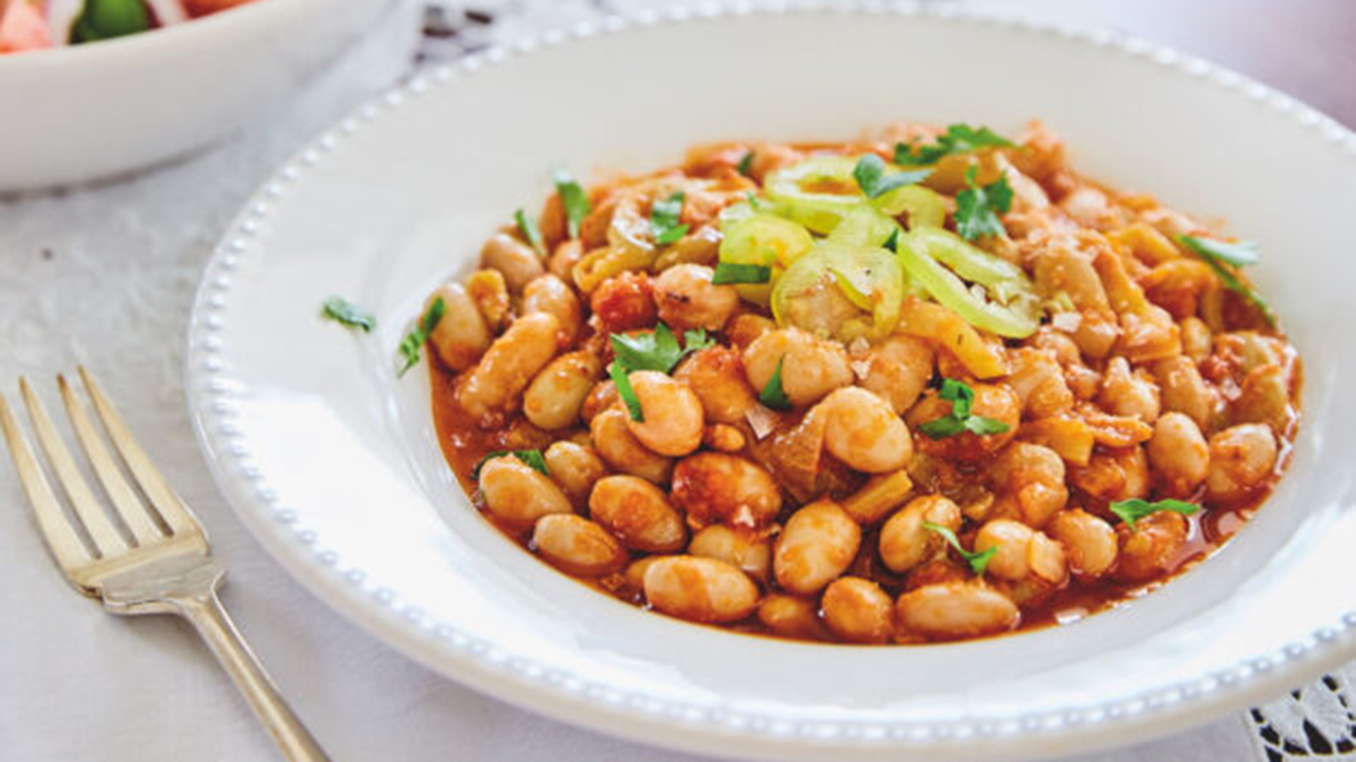 - 1.200 γρ. φρέσκες χάντρες (είναι τα ασπροκόκκινα φασολάκια), ζυγισμένες ακαθάριστες, καθαρισμένες από τα λουβιά τους – κρατάμε μόνο τους σπόρους (υπάρχουν και έτοιμες, καθαρισμένες, κατεψυγμένες στα σούπερ μάρκετ)
