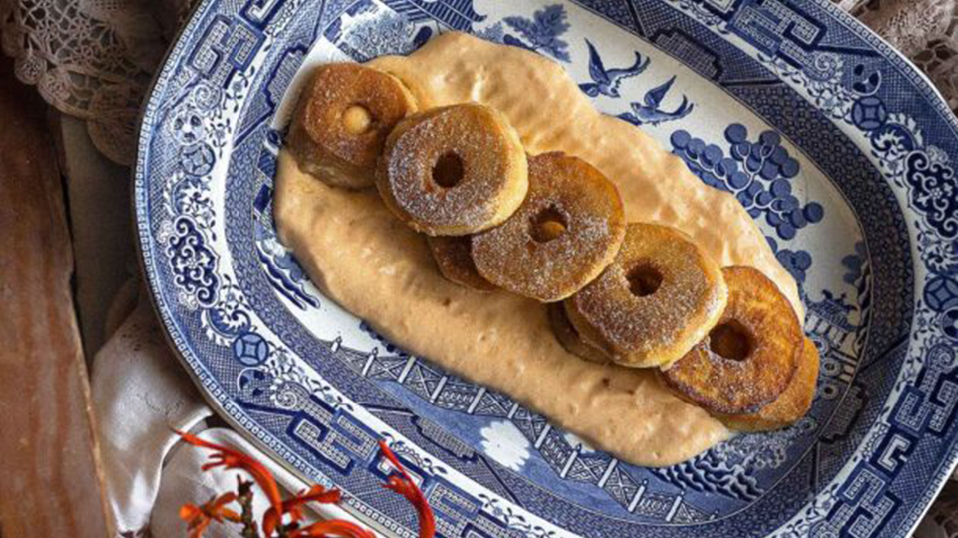Τα τηγανητά μήλα με «ολλανδική» κρέμα κρασιού ανέπλασε η σεφ Νένα Ισμυρνόγλου.