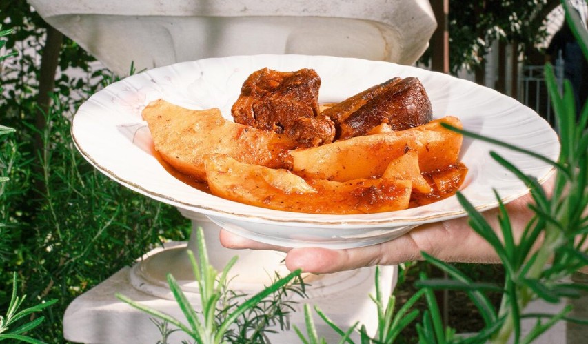 Στο πλαίσιο του αφιερώματος του Γαστρονόμου «200 χρόνια Ερμούπολη» μαγειρέψαμε πολλές παλιές συριανές συνταγές, συνδεδεμένες με την ιστορία του τόπου και των θεσμών του. Σε σπίτια, σε ταβέρνες, στην αγορά, ακόμη και σε γηροκομεία. Ρυζόσουπα, φακή νερουλή, αλμυρός χυλός σιμιγδαλιού ήταν ορισμένα από τα λιτά φαγητά που σερβίρονταν τα παλαιότερα χρόνια στο γηροκομείο «Άγιος Παντελεήμων», όπου οι μαγείρισσες Ειρήνη Κασσιώτη και Μαρία Βλάμη εργάζονται 27 και 21 χρόνια αντίστοιχα. Στην ίδια φιλοσοφία και αυτή η συνταγή για πατάτες μπλούμ με χοιρινό.