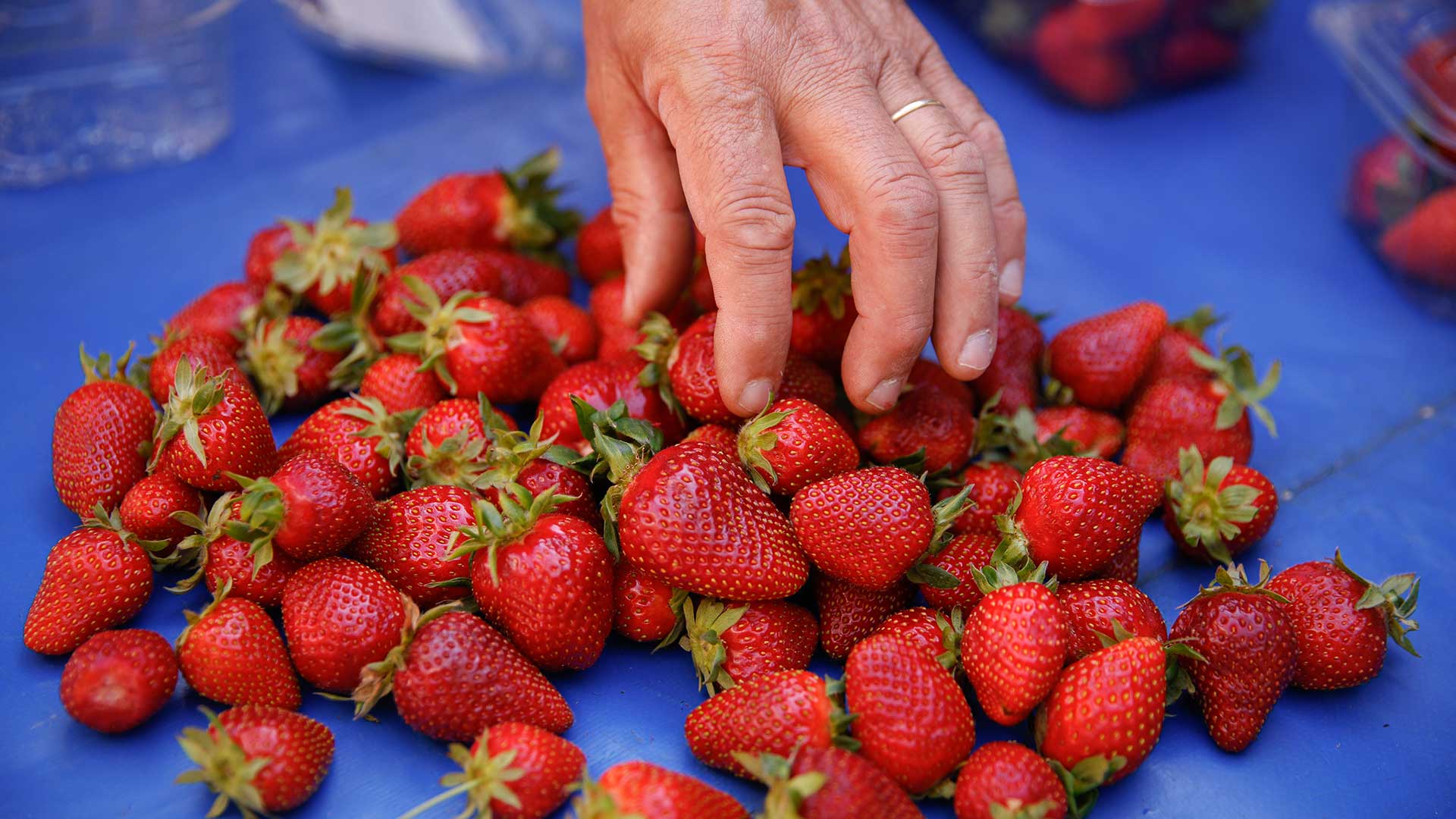 Μεσημέρι Δευτέρας στην αγορά των βιοκαλλιεργητών της Κηφισιάς. Ο ήλιος έχει ανέβει για τα καλά και οι πάγκοι είναι γεμάτοι με ανοιξιάτικα προϊόντα: κουκιά, αρακάς, χόρτα και μυρωδικά, τα πρώτα κολοκυθάκια. Κόσμος περνάει, σταματάει, ψαχουλεύει, ψωνίζει και συνεχίζει. Προς το τέλος της λαϊκής, ο πάγκος του Σπύρου Βυθούλκα έχει μόνο φράουλες. Τα πλαστικά κεσεδάκια, γεμάτα με το αγαπημένο φρούτο της άνοιξης, εξαφανίζονται με ταχύτητα αστραπής — τόσο που ανησυχώ μήπως τελειώσουν πριν φτάσει ο φωτογράφος. Ευτυχώς έχει κι άλλες. Ο Στέλιος, ο ανιψιός του, φέρνει καφάσια και ο πάγκος γεμίζει ξανά. Μια φρέσκια, μεθυστική γλύκα απλώνεται στον χώρο.