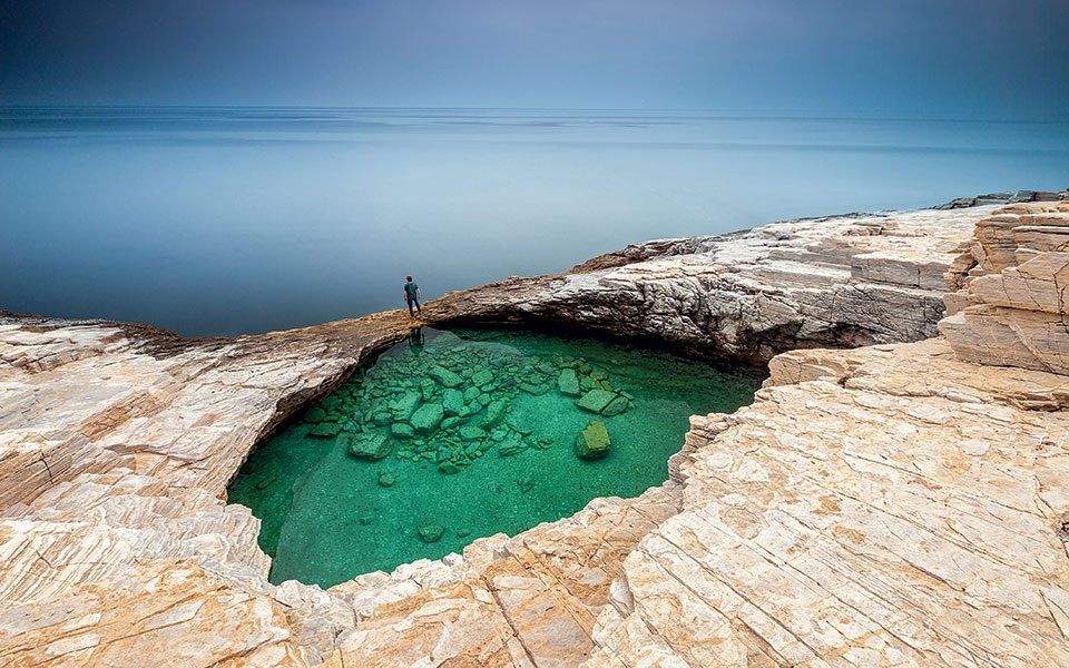 Είκοσι λεπτά περπάτημα χρειάζονται από το κοντινότερο σημείο με πολιτισμό της Καλύμνου και ξαφνικά βρίσκεσαι εκεί. Σε μία από τις πιο εντυπωσιακές σπηλιές του νησιού, και όχι μόνο. Χιλιάδες αναρριχητές έρχονται εδώ κάθε χρόνο για να ζήσουν την εμπειρία της Grande Grotta ή αλλιώς της Μεγάλης Σπηλιάς. Με 70 μέτρα ύψος, 200 μέτρα πλάτος και θέα που κόβει την ανάσα, προς το απέραντο γαλάζιο του Αιγαίου και την Τέλενδο από τη μια πλευρά, και τα επιβλητικά βράχια από την άλλη. Αυτά την έχουν κάνει από τους δημοφιλέστερους προορισμούς για αναρρίχηση παγκοσμίως και έχουν μετατρέψει την Κάλυμνο σε αναρριχητικό παράδεισο, διάσημη για αυτό σε όλο τον κόσμο. Τα ίδια βράχια που ανάγκασαν τους ντόπιους να πέσουν στη θάλασσα για να επιβιώσουν «κυνηγώντας» σφουγγάρια, ανεβάζουν τώρα τους επισκέπτες στα ουράνια. — Μανίνα Ντάνου