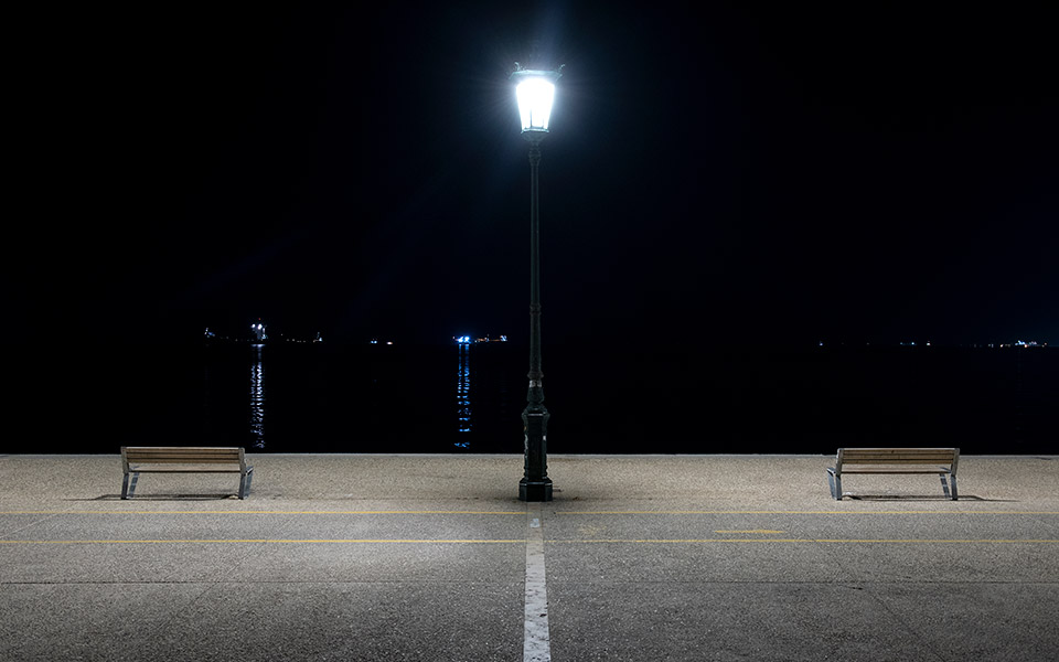 Είκοσι λεπτά πριν από τα μεσάνυχτα. Μετακίνηση νούμερο 0. Δεν χρειάζομαι sms για να ανέβω στην ταράτσα. Από εκεί βλέπω την έρημη πόλη. Χωρίς γέλια, αυτοκίνητα ή φώτα. Ο μεταλλικός ήχος του απορριμματοφόρου και τα λαϊκά που ακούγονται από το ραδιοφωνάκι που έχει ο άστεγος άνδρας για συντροφιά είναι τα μόνα που σπάνε τη σιωπή. Τα γράμματα που περνούν από τις οθόνες στις στάσεις λεωφορείων μού θυμίζουν αυστηρά ότι και το Φεστιβάλ Κινηματογράφου θα το απολαύσω φέτος μόνο από τον υπολογιστή.
