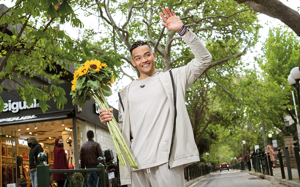 Στις βόλτες του στην Κηφισιά τού φωνάζουν «γεια σου, άρχοντα», του ζητούν selfies. «Συχνά με αναγνωρίζουν στον δρόμο, όταν έχω ελεύθερο χρόνο να βγω, μου αρέσει αυτό, σημαίνει ότι κάνω κάτι καλά», λέει, πάντα χαμογελαστός. Η πιο αστεία του φωτογραφία στα social είναι με τον φίλο του, Στέφανο Τσιτσιπά, να τον κρατάει αγκαλιά στην Ακρόπολη.
