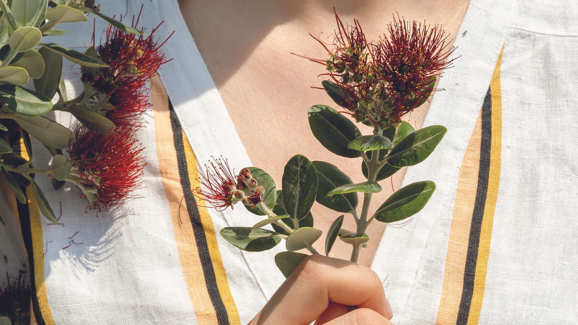 Παρατηρώ ότι οι ανθοφορίες σε αρκετούς από τους θάμνους και τα δέντρα των οποίων τον ρυθμό γνωρίζω είναι φέτος όψιμες, ίσως μάλιστα και εξασθενημένες. Ευθύνεται, φαντάζομαι, γι’ αυτό η ασυνήθιστα βροχερή άνοιξη και η αναμφίβολα αργοπορημένη έλευση του θέρους. Είμαστε ήδη στα μισά του και ακόμα θαυμάζω έτσι, στον κήπο μιας γειτόνισσας, τον άλικο θρίαμβο του μετροσίδερου (Metrosideros excelsa), ενός ωραιότατου εκπροσώπου του εξωτισμού που έχει για λίκνο του τα μεγάλα νησιά του Νότιου Ειρηνικού.