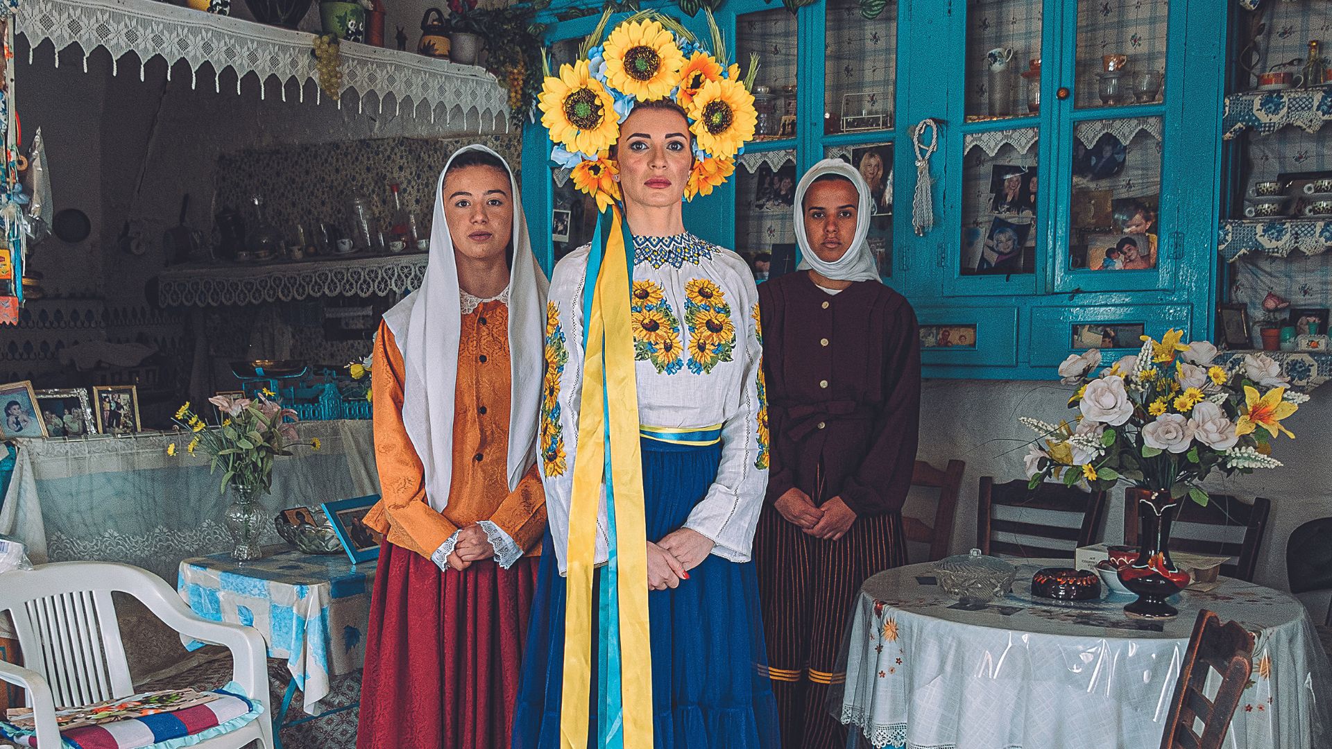 «Τα τοπικά ενδύματα είναι ο λαϊκός μας πολιτισμός, που ενσωματώνει κοινωνικούς κώδικες, αξίες και νοήματα που οι ρίζες τους χάνονται στον χρόνο», είπε ο φωτογράφος Μιχάλης Παππάς σε συνέντευξή του στο «Κ» (10/2021) για το πρότζεκτ του Μίτος: το νήμα της Ελλάδας. Περίπου δύο χρόνια μετά, κάνει μια παρόμοια εξερεύνηση, αναζητώντας νήματα που θα πυροδοτήσουν μια πολιτισμική συνομιλία. Αφορμή αποτέλεσε η πρωτοβουλία της Kythniale, στην οποία οι ντόπιοι της Κύθνου αναζητούν διάλογο με άλλους λαούς, όπως η Ουκρανία. Ο επιμελητής της σπονδυλωτής φωτογραφικής έκθεσης Nήματα – Нитки, Βαγγέλης Ιωακειμίδης, αναφέρει πως τον 18ο αιώνα ο κληρικός Ιγνάτιος από το νησί ίδρυσε τη Μαριούπολη στις όχθες της Μαύρης Θάλασσας. Δύο αιώνες μετά, πολίτες των Θερμών της Κύθνου και μέλη της ουκρανικής κοινότητας της Αθήνας πρωταγωνιστούν στα σαράντα φωτογραφικά έργα που έχουν τοποθετηθεί σε δεκαοκτώ σημεία της Χώρας και της Δρυοπίδας, αναδεικνύοντας συμβολικά τη σύνδεση ανάμεσα στους δύο τόπους. «Το νήμα παίρνει συμβολικές διαστάσεις και επιδιώκει να αναδείξει τη λαϊκή κουλτούρα σε ένα σύγχρονο πλαίσιο», αναφέρει ο φωτογράφος.