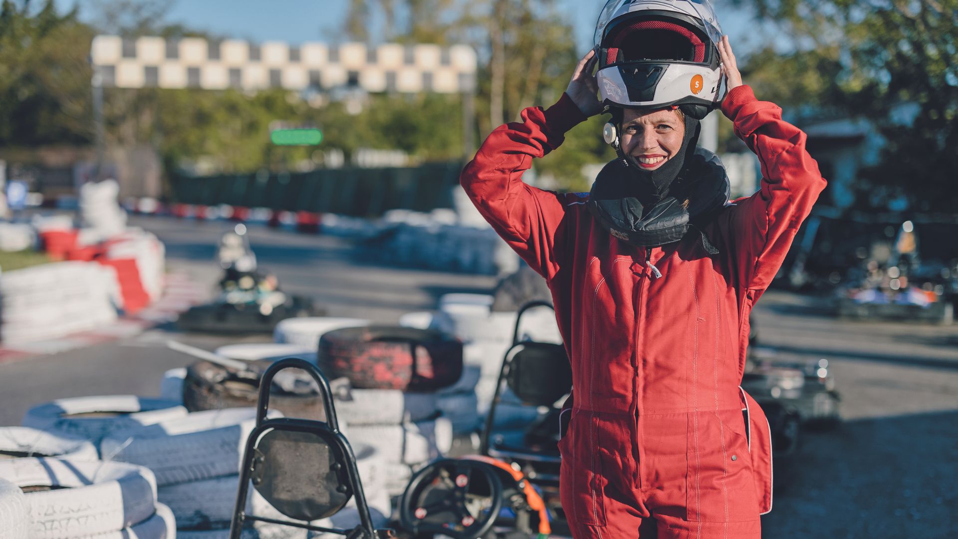 Στην Kartland δεν γίνονται προπονήσεις επαγγελματιών αθλητών. Ήδη από το 1999, όταν την ίδρυσε ο Νίκος Αντωνίου, ο στόχος ήταν να δημιουργήσει μια πίστα καρτ σε ευρωπαϊκά πρότυπα που να συνδυάζει τη διασκέδαση και την ασφάλεια. Με ένα μικρό διάλειμμα την περίοδο της πανδημίας, οι επισκέπτες είναι σταθερά πολλοί. Τα Σαββατοκύριακα, εκατοντάδες παιδιά και ενήλικες παίρνουν θέση πίσω από το τιμόνι, ενώ αυξητική τάση καταγράφεται και στα πάρτι – παιδιών και ενηλίκων. Στα θέματα της ασφάλειας τα πράγματα είναι πολύ αυστηρά· το διαπίστωσα πριν ακόμη μπω στο μονοθέσιο, όταν με οδήγησαν στον χώρο όπου φυλάσσεται ο προστατευτικός εξοπλισμός. Μπαλακλάβες, κράνη, περιλαίμια για την προστασία του αυχένα είναι υποχρεωτικά για όλους, ενώ υπάρχουν και ολόσωμες φόρμες που συστήνεται να φοράει κανείς. Τα μονοθέσια βρίσκονται στα… πιτς, όπου επιβιβάζεται ο οδηγός και κατευθύνεται σιγά σιγά από το προσωπικό στην αφετηρία. Εκεί λαμβάνει οδηγίες για τη συμπεριφορά του στην πίστα.