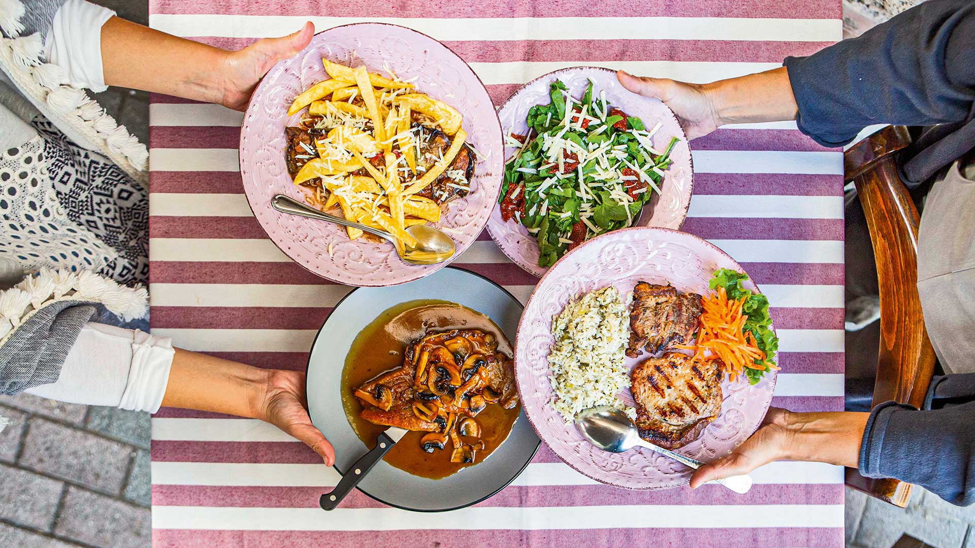 Οι Ταβουλάρηδες μπαίνουν στην κουζίνα εναλλάξ. Μια μαγειρεύει ο Δημήτρης, μια η γυναίκα του η Αθηνά Σαραφαντώνη, μια η μάνα του, μια ο πατέρας του. Τη μέρα που πήγα στο μαγαζί, η κυρία Βέτα είχε έρθει με ένα ταψί γεμιστά και ρεβανί, «και αύριο ο μπαμπάς θα κάνει χιουνκιάρ και αρνί με σταφίδες», μου είπε ο Δημήτρης, συμπληρώνοντας με γέλια πως «μαγειρεύουμε σε διαφορετικούς χρόνους, για να μη μαλώνουμε μεταξύ μας». Μαγειρεύουν με υλικά από τον τόπο, «εκτός από το ελαιόλαδο, που το φέρνουμε από Κρήτη και Καλαμάτα».