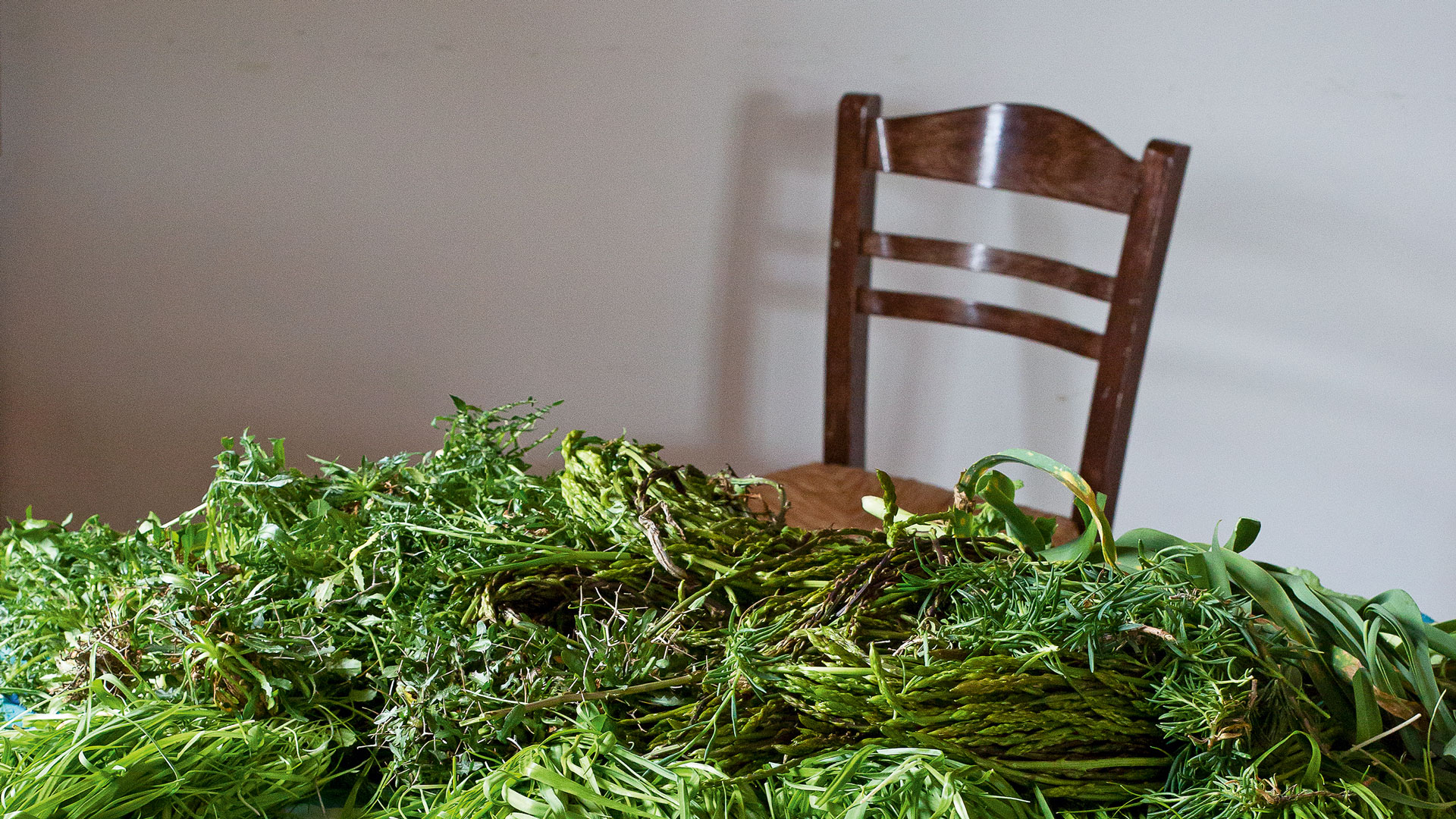 Χόρτα. Πικρά, γλυκά, καλλιεργημένα και –τι ωραίο που θα ήταν!– άγρια, μαζεμένα από βουνά και ραχούλες. Ζαρζαβατικά και φρούτα με καταγωγή ονομαστή: σαντορινιές ντομάτες, τηνιακές αγκινάρες, ανδριώτικες λύρες (κολοκύθες), μελιτζάνες τσακώνες, ντομάτες μπατάλες της Αττικής, πράσα από την Αλμωπία, κάστανα κρητικά, πορτοκάλια από τη Σκάλα Λακωνίας, μήλα πηλιορείτικα και Πιλαφά Ντελίσια από την Τρίπολη.
