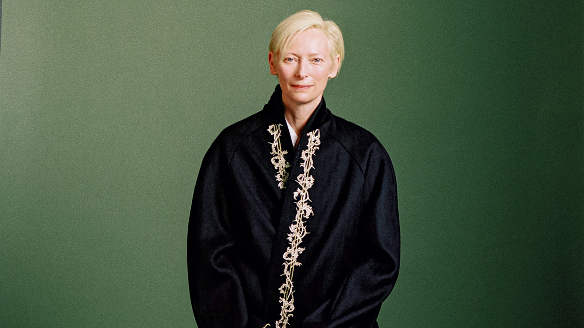 Φτάνω την ώρα που η Τίλντα Σουίντον ποζάρει για τη φωτογράφισή της και έχει μόλις φορέσει ένα ταρτάν παντελόνι και έντονα, δίχρωμα παπούτσια. Στέκεται εντελώς ακίνητη καθώς ο κομμωτής φροντίζει την ξανθιά κόμη της, που την κάνει να μοιάζει με εξωτικό πουλί – ή με κομψή χούλιγκαν, αν και το πρόσωπό της παραμοιάζει αγγελικό για να μεταμορφωθεί σε κάτι άγριο. Είναι εμφανές από την πρώτη στιγμή ότι η Σουίντον είναι εκατό τοις εκατό συγκεντρωμένη στη δουλειά που έχει αναλάβει, έχοντας ταυτόχρονα υπερβολικά μεγάλη έγνοια όλους όσοι βρίσκονται γύρω της. Αυτό το μείγμα επαγγελματισμού και ζεστασιάς σε αφοπλίζει, ειδικά εάν περίμενες τη μεγαλοπρέπεια μιας σούπερ σταρ.