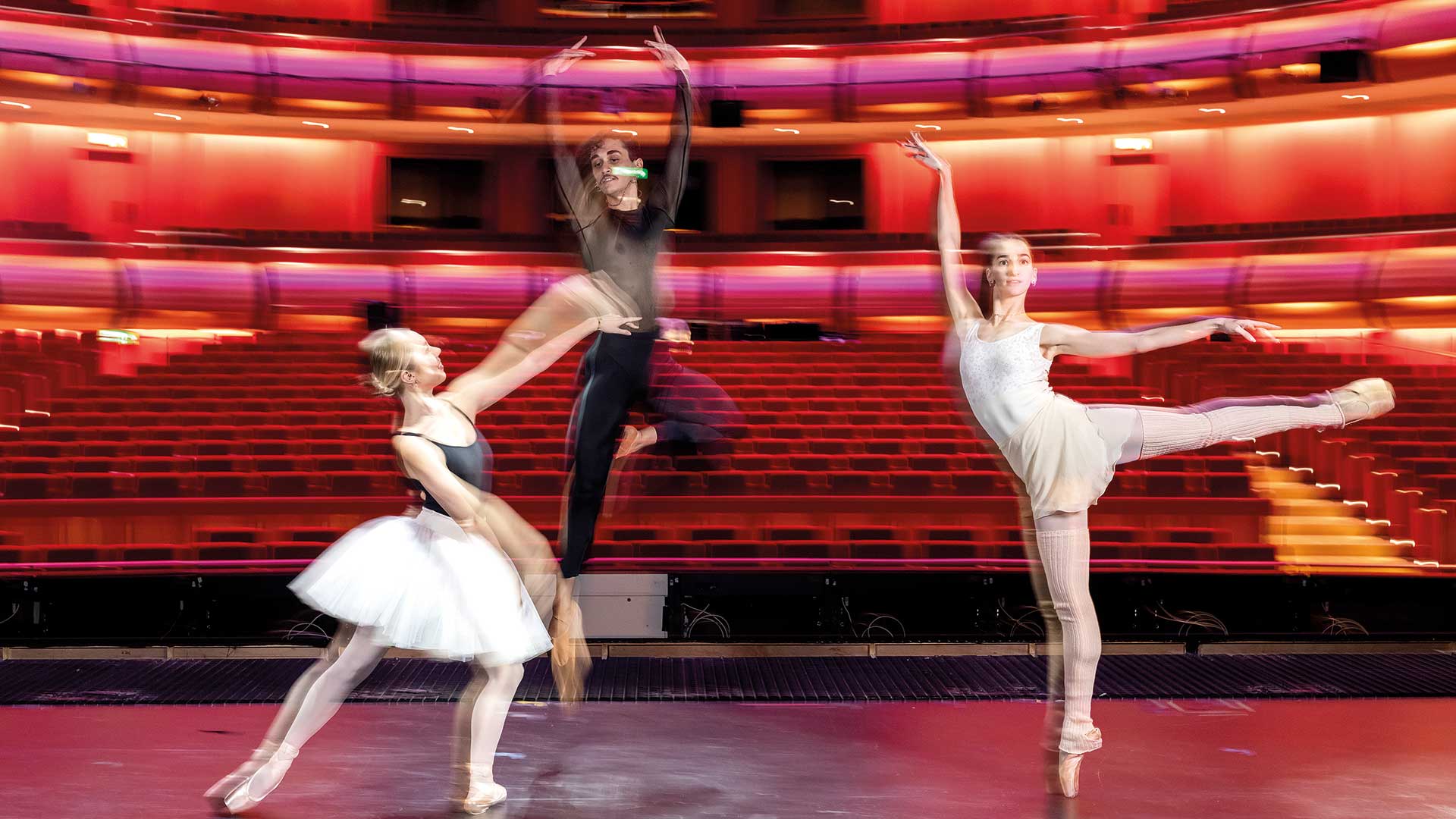 Στα αχανή παρασκήνια της αίθουσας «Σταύρος Νιάρχος» της Εθνικής Λυρικής Σκηνής επικρατεί μια κάποια ιερή ακαταστασία, ένα μπλέξιμο της ιντάστριαλ αισθητικής με μια θεατρικότητα του «παλιού, καλού καιρού». Από τη μία υπάρχει μια παραμυθένια ροζ αψίδα, φτιαγμένοι από φελιζόλ κορμοί δέντρων και «μαγικά» σκηνικά αντικείμενα που θα χρησιμοποιηθούν στον «κατά Ρήγο» Καρυοθραύστη, τη χριστουγεννιάτικη παράσταση της ΕΛΣ, που κάνει πρεμιέρα στις 23 Δεκεμβρίου. Σε μια γωνία, δε, το ένα πίσω από το άλλο, έχουν «αφεθεί» δύο μεγάλα πιάνα με ουρά. Από την άλλη, γύρω μου βλέπω όλο αλουμινένιες σκάλες, ξύλινα κιβώτια αποθήκευσης, μπαλαντέζες, σφυριά, εργαλεία κάθε είδους. Στην πανύψηλη, σχαρωτή οροφή έχουν στερεωθεί σταγκόνια (από ατσάλι, υποθέτω) και τα λεγόμενα «αλυσιδωτά»: οι τροχαλίες που καταλήγουν σε γάντζους και χρησιμεύουν στην ανύψωση και τη μετακίνηση των σκηνικών. Από το βάθος ακούγονται ήχοι από σφυριά και κάποια στιγμή, από ένα κινητό τηλέφωνο, φτάνει στα αυτιά μου η μελωδία μιας βαριάς, λαϊκής επιτυχίας, για να μου θυμίσει ότι η όπερα είναι ένας συμπεριληπτικός μουσικός χώρος. Όλα αυτά μαζί αποτελούν με τη σειρά τους έναν ξέχωρο κόσμο από εκείνον που φτιάχνουν τα ζεστά φώτα και τα κόκκινα καθίσματα της πλατείας, που μισοφαίνεται από την μπούκα. Εκεί βρίσκονται ήδη και φωτογραφίζονται τρεις από τους χορευτές του «νέου, διεθνούς αίματος» του corps de ballet της ΕΛΣ. Είμαστε εκεί για να τους γνωρίσουμε, να τους ακολουθήσουμε από τα καμαρίνια όπου βάφονται έως την αίθουσα όπου κάνουν το μάθημά τους, στον πέμπτο όροφο του κτιρίου.
