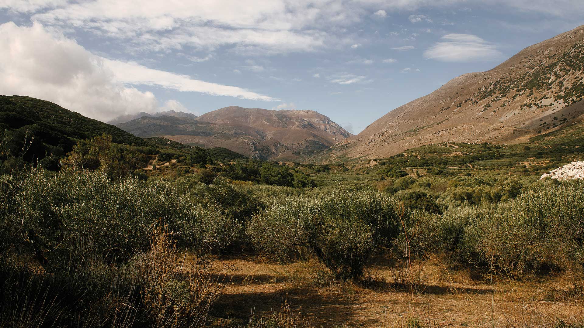 «Όταν οι πελάτες μού παραπονιούνται για την άνοδο των τιμών, τους προσκαλώ να έρθουν μια μέρα στο χωράφι για να δουν πώς βγαίνει το ελαιόλαδο. Κάποιες διαδικασίες είναι πιο δύσκολες απ’ ό,τι φανταζόμαστε». Ο Βιτσέντζος, μαζί με τον συνέταιρό του Βαλάντη Λασηθιωτάκη, θεωρούνται από τους τυχερούς, αφού οι ελαιώνες τους έχουν φέτος βεντέμα – ή, έστω, μισοβεντέμα. Υπάρχουν δηλαδή αρκετές ελιές για να μαζέψουν. Το δέντρο που ραβδίζουμε βρίσκεται σε υψόμετρο 400 μ. και περιτριγυρίζεται από βουνά. Εκατοντάδες λιόδεντρα απλώνονται ως τις παρυφές των βουνών, ενώ το ποταμάκι που κυλά στη μια άκρη της φυσικής αυτής λεκάνης ευνοεί τη βλάστηση.