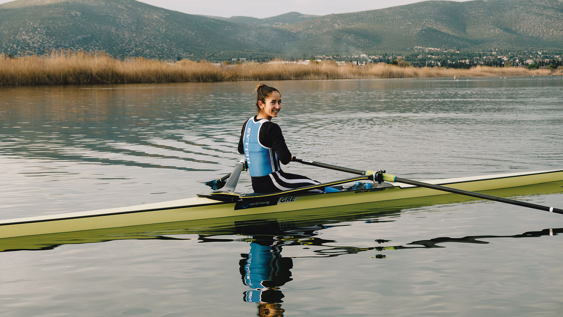«Αργότερα, πριν νυχτώσει, ο ουρανός γίνεται ολόκληρος ροζ», μας λέει η Μηλένα με ενθουσιασμό καθώς φοράει τα ειδικά παπούτσια που είναι μονίμως περασμένα στο σκάφος. Προσέχει το σκιφ της με ευλάβεια, με τον ίδιο τρόπο που ένας ποδοσφαιριστής φροντίζει τα παπούτσια του. Πιάνει τα κουπιά και αρχίζει να κωπηλατεί αργά προς τα πίσω. Είναι η κίνηση την οποία, όπως μου εξηγεί, προσπαθεί πεισματικά, όπως όλοι οι αθλητές της κωπηλασίας, να εκτελέσει όσο πιο άρτια γίνεται. «Είναι σαν να προσπαθείς κάθε φορά να φτιάξεις έναν τέλειο κύκλο. Είναι αδύνατον να τον καταφέρεις, αλλά προσπαθείς συνεχώς να τον κάνεις καλύτερο».
