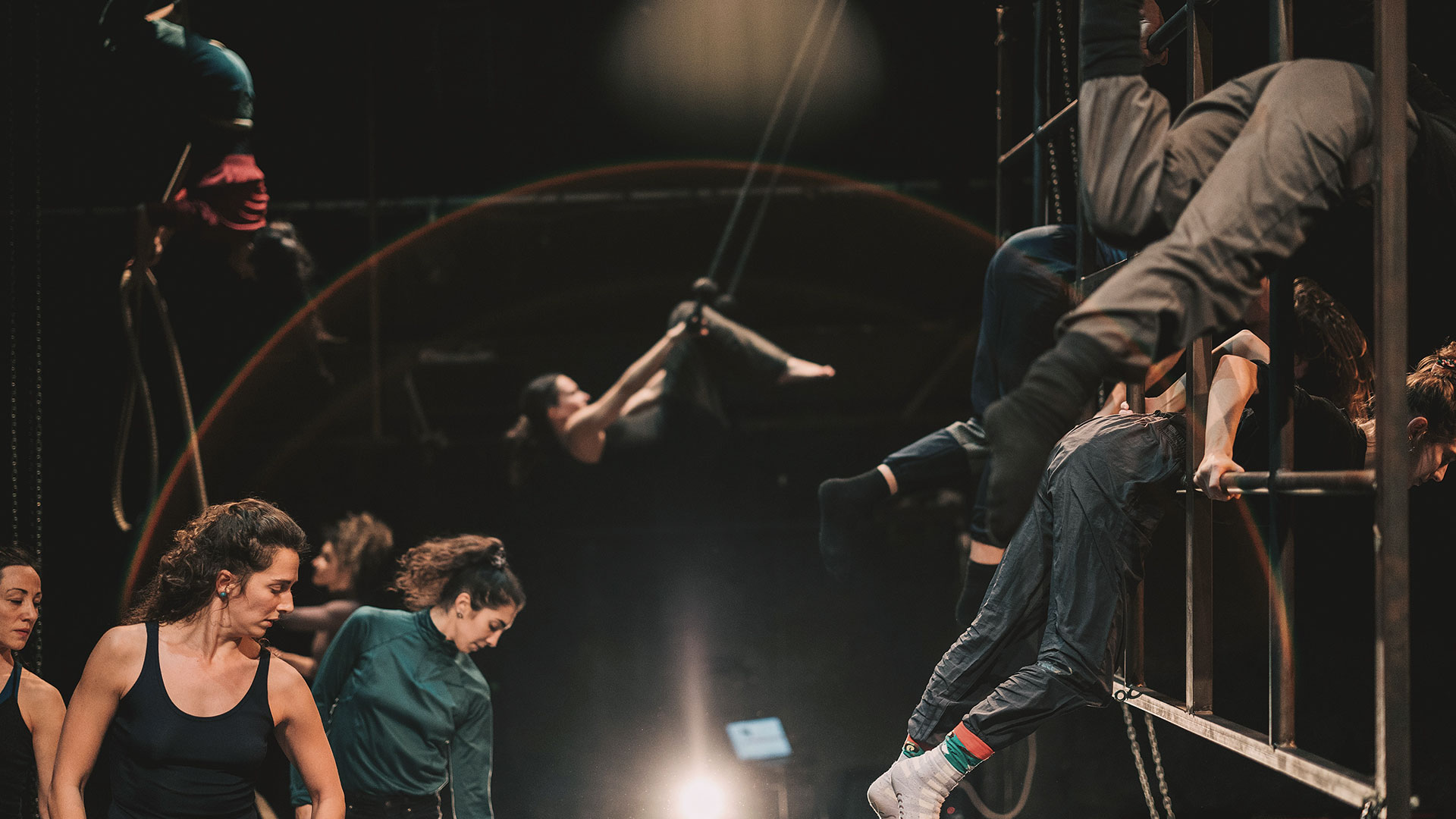 Η φάση θα μπορούσε να είναι «τι είναι εδώ;» ή «δεν ξέρω τι λένε σε αυτές τις περιπτώσεις». Δεν έχω κάνει ποτέ πριν κάποια σοβαρή κουβέντα περί τσίρκου. Μάλλον ούτε ασόβαρη. Όσο για τα ακροβατικά, αυτά παραπέμπουν στο μυαλό μου ευθέως στον χώρο του «φθηνού» θεάματος. Παρ’ όλα αυτά, έχω δει τρεις παραστάσεις της ομάδας κι όμΩς κινείται, χωρίς να αντιληφθώ ότι αυτό που εκτυλίσσεται μπροστά στα μάτια μου είναι όντως τσίρκο, ένα τσίρκο διαφορετικό από αυτό που έχουμε οι περισσότεροι στο μυαλό μας. Η ομάδα γιόρτασε πρόσφατα τα 20ά της γενέθλια. Ιδρύθηκε λίγο πριν από τους Ολυμπιακούς Αγώνες από τον Καμίλο Μπεντανκόρ και τη Χριστίνα Σουγιουλτζή, η οποία μου ανοίγει τη βαριά σιδερένια πόρτα του θεάτρου Ροές και με ξεναγεί στη σκηνή. Μου δείχνει τα πανιά, τις κούνιες, τα σχοινιά και μια σιδερένια κατασκευή σαν σκακιέρα που χρησιμοποιούν τα μέλη της ομάδας για τα ακροβατικά τους.