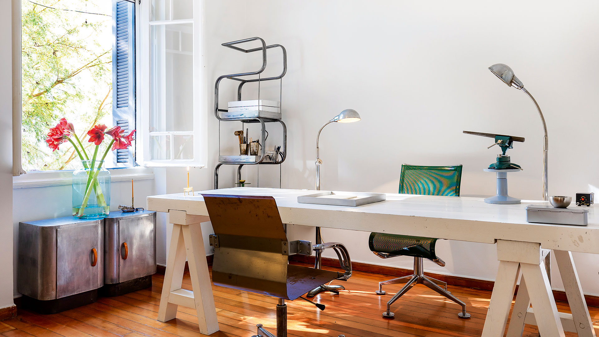 Αγαπημένο μου σημείο στο σπίτι: Το γραφείο μου, ο πνευματικός μου θρόνος, όπου μπορώ να κάνω τα πράγματα να συμβούν και να περιηγηθώ σε λογής ευρήματα. Εδώ που τον χειμώνα ψιλoκρυώνω και το καλοκαίρι ψιλoζεσταίνομαι, αλλά νιώθω πάντα άνετα.