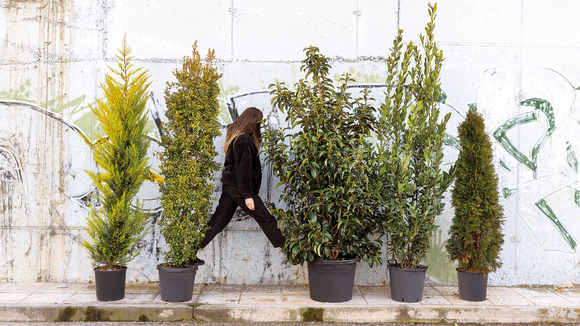 Θα παραθέσω, σχεδόν επιγραμματικά, κάποιες προσωπικές συμπάθειες από αειθαλή φυτά που χρησιμοποίησα στο παρελθόν για να θωρακίσω την ιδιωτικότητά μου. Οι επιλογές της αγοράς, να θυμάστε, είναι πολλαπλάσιες. Αγαπώ πολύ τον ελαίαγνο (Eleagnus x ebbingei), λόγω κυρίως της ευωδιαστής, φθινοπωρινής ανθοφορίας του, αλλά και της απολαυστικής χρωματικής αντίθεσης ανάμεσα στην επάνω σκούρα και την γκριζοπράσινη κάτω πλευρά των φύλλων του. Δύο ψηλοί, ιδιαίτερα ανθεκτικοί θάμνοι που προσαρμόζονται πρόθυμα σε μεγάλο εύρος συνθηκών είναι το λιγούστρο (Ligustrum japonicum) και το λουσίντουμ (Viburnum tinus var. lucidum). Αμφότερα διαθέτουν μεγάλα και στιλπνά φύλλα. Επειδή όμως έχουν χαρακτήρα κάπως αδιάφορο, τα συνδυάζω με την εξίσου σκληραγωγημένη φωτίνια (Photinia x fraseri), της οποίας το εαρινό, νέο φύλλωμα είναι κόκκινο και καλοκαιριάτικα πορφυρό. Από κωνοφόρα, πάλι, ξεχωρίζω τη σχετικά αργής ανάπτυξης ανατολική θούγια (Thuja orientalis), με τη χαρακτηριστική πυραμιδοειδή κόμη και το ιδανικό για πιο ψυχρές περιοχές, κωνικού σχήματος και κιτρινοπράσινου, αρωματικού φυλλώματος λεμονοκυπάρισσο ή «γκόλντκρεστ» (Cupressus macrocarpa var. goldcrest).