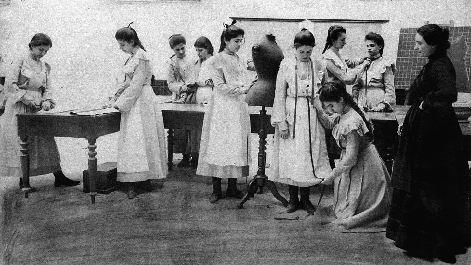Δευτέρα πρωί, εισβάλλω –μάλλον απροειδοποίητα, όπως κατάλαβα αργότερα– σε μία από τις αίθουσες του τρίτου ορόφου του Συλλόγου Εκπαιδεύσεως Νεανίδων στον αριθμό 3Β της οδού Κολοκοτρώνη. Το μάθημα ραπτικής είχε ξεκινήσει κάποια λεπτά νωρίτερα και οι μαθήτριες είχαν ήδη ανοίξει τα πατρόν τους πάνω στα τραπέζια. Όση ώρα η δασκάλα σκύβει πάνω από την καθεμία για να ελέγξει τη δουλειά τους, εγώ ρίχνω κλεφτές ματιές στο εγχειρίδιο που έχει συντάξει η ίδια με αναλυτικές οδηγίες για κάθε άσκηση. Πατιλέτες, κορσάζ, ζαπονέ μανίκια: γαλλικοί όροι πετάγονται μπροστά στα μάτια μου, αλλά δεν σημαίνουν τίποτα, το κλείνω, δεν έχει νόημα. «Έτσι ήμουν και εγώ», εξομολογείται η Ειρήνη Καλόσακα, που διακρίνει την απόγνωση στο βλέμμα μου. «Την πρώτη φορά με έπιασε πανικός, δεν έκανα τίποτα, είπα δεν θα ξαναπατήσω. Για να καταλάβεις, στη δική μου οικογένεια, ο άντρας μου κόνταινε τα παντελόνια του, ενώ τα δικά μου και της κόρης μου τα έδινα στη μοδίστρα. Ούτε κουμπί δεν μπορούσα να ράψω!»