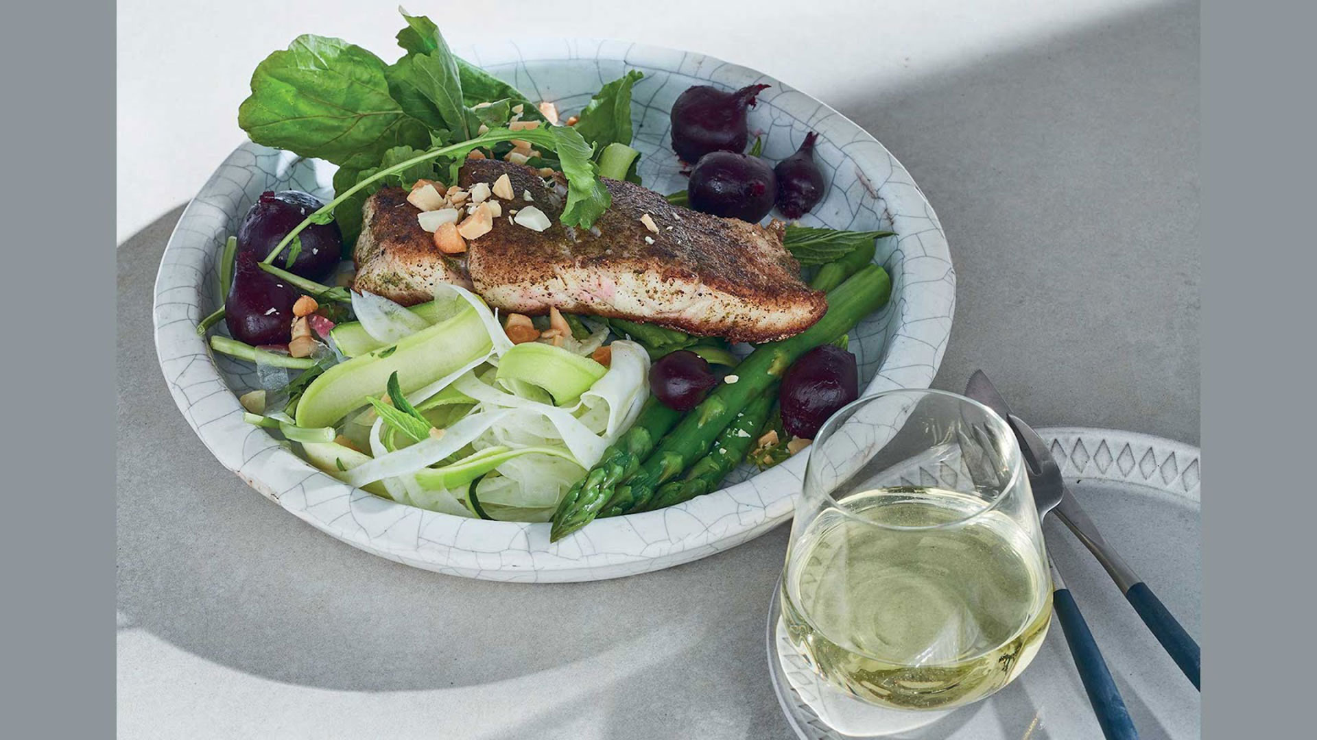 Το σπάνιο εξαιρετικό ψάρι της εποχής είναι το μαγιάτικο και, αν το βρείτε, να το τιμήσετε δεόντως με προσεκτικό ψήσιμο για να μην το στεγνώσετε και να βάλετε δίπλα του το κρασί που του αξίζει! Ανοίγω ένα Ξινόμαυρο Αμυνταίου, που είναι πιο μαλακό και φρουτώδες από αυτό της Νάουσας, και, πιστέψτε με, είναι ιδανικό για την πλούσια σάρκα τόσο του μαγιάτικου όσο και για του επίσης φημισμένου ροφού.
