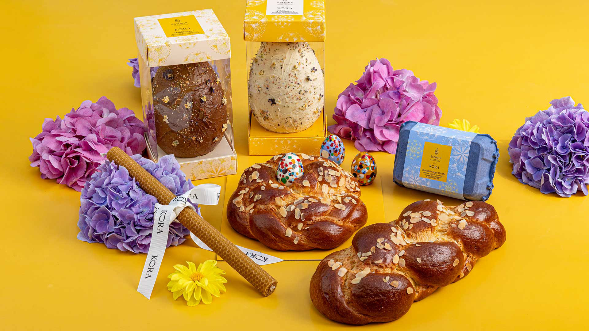 Από τις παραδόσεις της Ουκρανίας και της Πολωνίας έρχεται η babka που ζυμώνεται στην Kora –μια περίτεχνη, αφράτη πλεξούδα εμπλουτισμένη με μαύρη σοκολάτα, σοκολάτα γάλακτος και γέμιση πραλίνας φουντουκιού–, ενώ από τα έθιμα των γειτόνων εμπνέεται και ο Στέλιος Παρλιάρος, που, όπως κάθε χρόνο, ετοιμάζει στο Sweet Alchemy (Ηροδότου 24, Κολωνάκι, τηλ. 210-7240205) την colomba di Pasqua, ένα ιταλικό πασχαλινό ψωμί με μπόλικο πορτοκάλι και σταφίδα, παρόμοιο με το πανετόνε, αλλά σε σχήμα περιστεριού, όπως δηλώνει και το όνομά του.