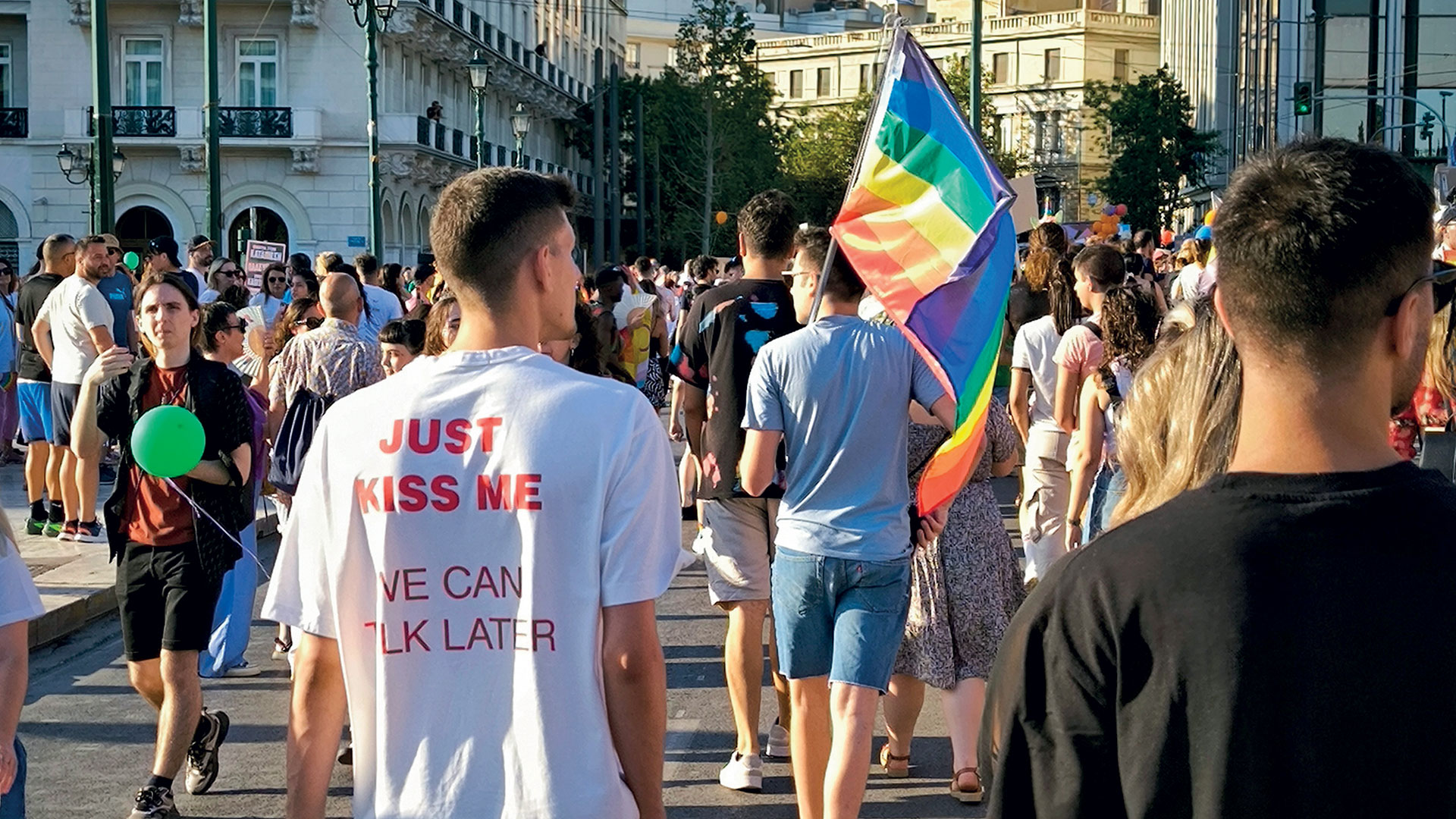 «Ένας νόμος δεν αρκεί» ήταν το σύνθημα του φετινού Athens Pride. Και πράγματι, ένας νόμος δεν είναι αρκετός για να επιφέρει την πολυπόθητη κοινωνική αλλαγή και αποδοχή. Λίγο να απομακρυνόταν κανείς προς την Καπνικαρέα, θα δεχόταν τα στραβά βλέμματα και τα ομοφοβικά σχόλια των περαστικών, κυρίως αγοριών και λιγότερο κοριτσιών κάτω των δεκαοκτώ. Τα αυτιά μου πιάνουν μια παρέα εφήβων να σχολιάζουν για δύο κοπέλες που περπατούσαν χέρι χέρι στην Ερμού. «Κοίτα, ρε, πώς κυκλοφορούν, ρε. Το έχουμε χάσει τελείως», λέει ο «αρχηγός», που φτύνει στα πλακάκια του πεζόδρομου, όσο τα βλέμματα της πενταμελούς παρέας τις καρφώνουν.
