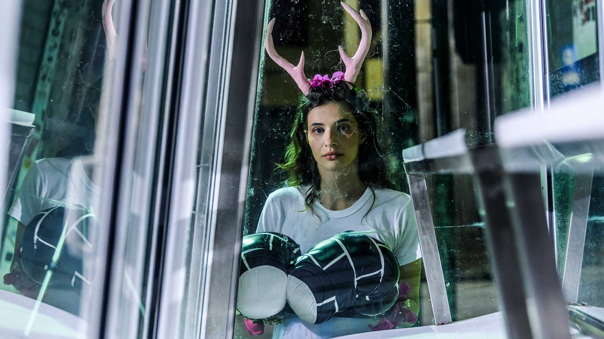 Η Αικατερίνη Παπαγεωργίου σκηνοθέτησε την ηθοποιό, σε μια αέναη κίνηση, να ερμηνεύει το ρόλο της πάνω σ’ ένα φουσκωτό από αυτά που βρίσκεις στα επαρχιακά λούνα παρκ. Το φουσκωτό έμοιαζε με κάστρο σαν εκείνα που έφτιαχναν οι άνθρωποι για να προστατεύονται, μόνο που αντί για πύργους στις γωνίες του εξείχαν φαλλοί, σαν να επιτηρούσαν όχι μόνο τι γινόταν απ’ έξω, αλλά κυρίως μέσα.