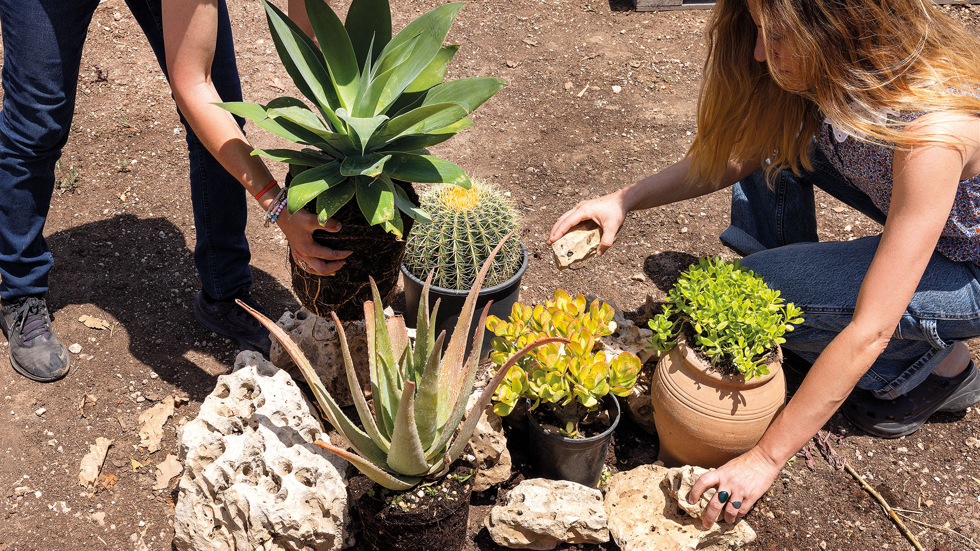 Πρώτα απ’ όλα θα εστιάσετε στο κλίμα και στη θέση αν η περιοχή σας είναι παγετόπληκτη ή το μέρος σας σκιερό, μην μπείτε καλύτερα στον κόπο. Σειρά έχει το έδαφος, πρέπει να μη νεροκρατά, ώστε τα φυτά που θα επιλεγούν να μην ταλαιπωρούνται από τις χειμωνιάτικες βροχές. Τα σημεία με ελαφρά κλίση σίγουρα υπερέχουν, ενώ αν το χώμα σας είναι βαρύ θα χρειαστεί να προσθέσετε ποταμίσια άμμο ή ελαφρόπετρα. Αποφασίστε για τη θέση του βραχόκηπου, τις διαστάσεις του και για το σχέδιο πάνω στο οποίο ενδεχομένως επιθυμείτε να τον αναπτύξετε χρησιμοποιώντας κοντά καλάμια και έγχρωμες κορδέλες. Θα τον παρατηρήσετε από όλες τις γωνίες, ξανά και πάλι, μετακινώντας κάθε φορά τα σημάδια, μέχρι που θα καταλήξετε στο οριστικό σχήμα. Με τον ίδιο τρόπο θα επιλέξετε τη θέση των μεγάλων ή μικρών βράχων, μάλλον θα σας παιδέψει περισσότερο η σχετική με το χρώμα, το σχήμα και την υφή τους απόφαση. Αφού πακτωθούν αυτοί, σειρά έχουν τα φυτά. Θα εστιάσετε βεβαίως στα παχύφυτα και στους σφαιρικούς κάκτους εχινόκακτος, φερόκακτος, αθάνατος, αλόη, κράσσουλα, σέδo, ετσεβέρια, σεμπερβίβο, ευφόρβια είναι μερικές από τις πιο αξιόπιστες επιλογές. Συνδυάστε τα με αρωματικά, ελληνικά φρύγανα (λεβάντα, φασκόμηλο, θυμάρι, δίκταμο, μαντζουράνα), που ανθίζουν καλοκαιριάτικα, για να προσφέρουν χρώμα στον βραχόκηπό σας την εποχή που τα χρειάζεται ιδιαιτέρως. Προσθέστε ένα δύο διακοσμητικά στοιχεία, όπως ένα μισοχωμένο πιθάρι ή ένα μικρό μαρμάρινο γλυπτό, και ολοκληρώστε τη δημιουργία σας, αν θέλετε, καλύπτοντας τα γυμνά σημεία με ποταμίσια βότσαλα, λευκά ή χρωματισμένα.