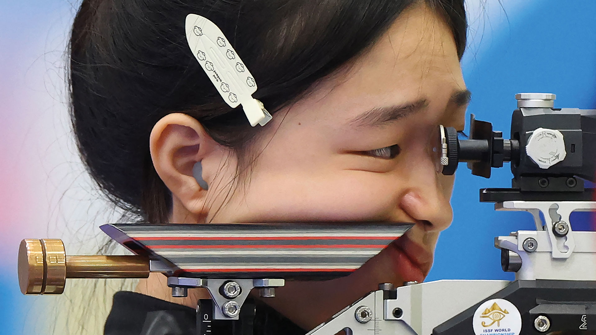 Η 17χρονη Χουάνγκ Γιουτίνγκ και ο συναθλητής της Σενγκ Λιάο ήταν οι πρώτοι που κέρδισαν χρυσό ολυμπιακό μετάλλιο στους Ολυμπιακούς του Παρισιού, το πρώτο και για την Κίνα στους Αγώνες. Στη φωτογραφία, σε μία από τις βολές του μεικτού της σκοποβολής.