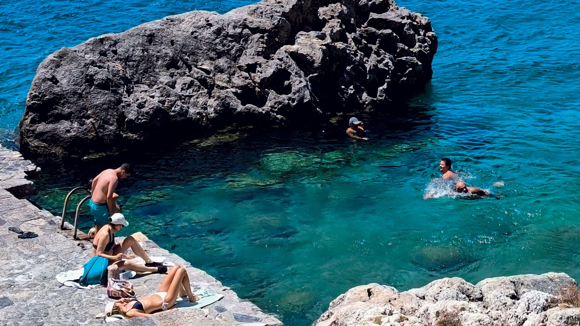 Άλλα χιλιόμετρα γράφει το Google για Μονεμβασιά, άλλα οι ταμπέλες στον δρόμο. Έχει σημασία; Ο δρόμος μάς μεθάει με τις στροφές και τα ανεξήγητα ισιάδια του, όπου το κοντέρ αγγίζει τα 90 χλμ./ώρα. Στην πύλη του Κάστρου, ένα συνεργείο του ΔΕΔΔΗΕ κουβαλάει φερτά υλικά με τα καρότσια της οικοδομής. Οι τουρίστες τούς φωτογραφίζουν. Μαθαίνω πως οι παλιές γενιές που μένουν στα χωριά έξω από το Κάστρο δεν θέλουν να μπαίνουν εκεί μέσα, γιατί έχει παραδοθεί στον τουρισμό. Το μαρτυρούν τα τουριστολοΐδια, οι ξύλινες μαρκίζες πανσιόν και οι κλειδοθήκες με κωδικό, σημάδι Airbnb. Δυσφορία. Πότε θα φύγουμε;