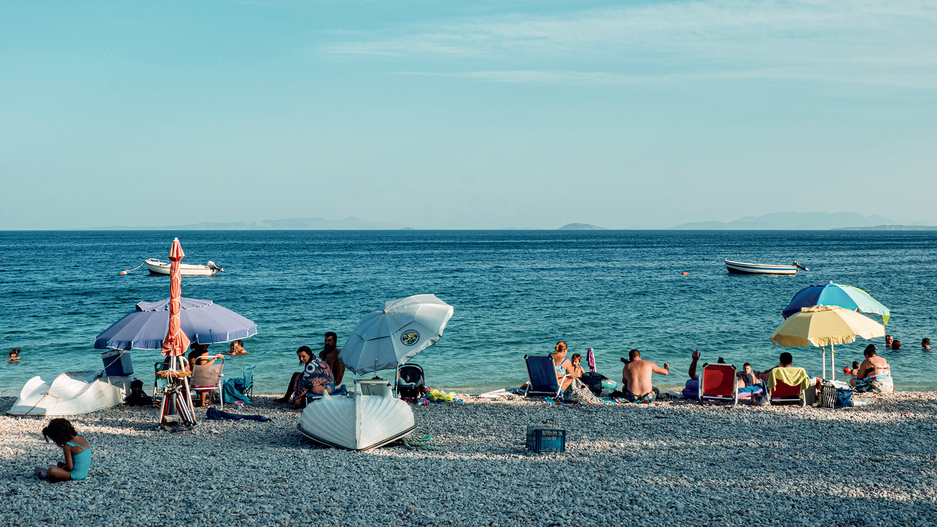 Η αλήθεια είναι πως δεν υπάρχουν πολλά ειδυλλιακά τοπόσημα σε αυτή την ακτογραμμή: εξοχικά εκτός σχεδίου, κατοικίες που φανερώνουν περασμένα μεγαλεία, εκτρωματικά ξενοδοχεία, χώροι αναψυχής που σαπίζουν μέρα με τη μέρα και τα σημάδια των καταστροφικών πυρκαγιών του 2016 και του 2023 στα Γεράνια Όρη. Ωστόσο, για όσους μένουν Αθήνα το καλοκαίρι και έχουν την ανάγκη για μια βουτιά στα μπλε νερά, απλώνοντας μια ψάθα κάτω από τον ήλιο και αλλάζοντας παραστάσεις για λίγες ώρες, δίχως να ταλαιπωρηθούν και να ξοδέψουν μια περιουσία, τα μπάνια του Προαστιακού αποτελούν μια μικρή ταξιδιωτική όαση στα πέριξ της πρωτεύουσας, η οποία έχει καλτ αποχρώσεις από μια τουριστική πλευρά της Ελλάδας που δεν υπάρχει πια.