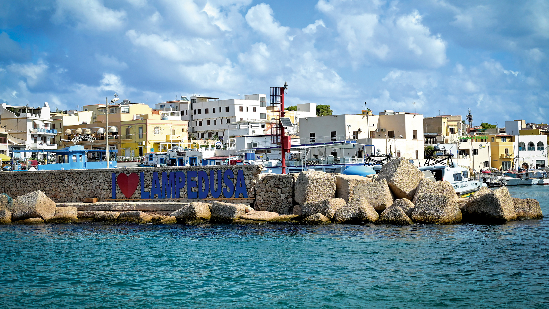 Λίγο πιο κάτω, στο πολιτιστικό κέντρο Porto M, ένα κουκλοθέατρο αναπαριστά την επικαιρότητα του νησιού. Στη διπλανή αίθουσα, αντικείμενα που κάποτε ανήκαν σε μετανάστες εκτίθενται μαζί με ένα ποίημα αφιερωμένο στον «θεό των ισοθερμικών κουβερτών». Ο συγγραφέας Τζιάκομο Σφερλάτσο είναι η ψυχή του Porto M. «Αγωνίζομαι για να μη γίνει το νησί μου στρατώνας», λέει.