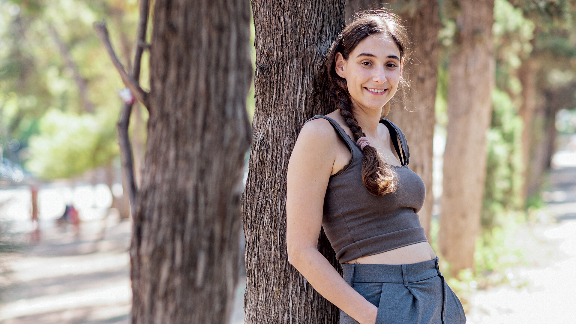 Συνάντησα τη Φωτεινή Αθερίδου στη γειτονιά της μέσα στο καταπράσινο Άλσος Νέας Σμύρνης. Αυτή η φυσική όαση είναι το προσωπικό της καταφύγιο. Σχεδόν καθημερινά τη βρίσκεις εδώ, είτε με τα παιδιά της –τον πεντάχρονο Θοδωρή και τον 16 μηνών Ηρακλή– για παιχνίδι στις κούνιες, είτε μόνη της, να αναζητά γαλήνη μέσα από βόλτες, τρέξιμο και γυμναστική. «Έρχομαι εδώ για να αποσυμφορούμαι», μου λέει. Με δύο μικρά παιδιά στο σπίτι και μια φιλόδοξη θεατρική παραγωγή στα σκαριά, η ησυχία είναι μια σπάνια πολυτέλεια πλέον για τη Φωτεινή. «Το να είμαι μητέρα με έχει ολοκληρώσει», παραδέχεται. «Μέχρι να κάνω παιδιά, δεν καταλάβαινα τι είναι αγάπη. Έλεγα “σ’ αγαπώ”, αλλά δεν ήξερα τι σημαίνει πραγματικά. Τώρα η αγάπη γιγαντώνεται και μπορώ να τη μοιράζομαι απλόχερα».