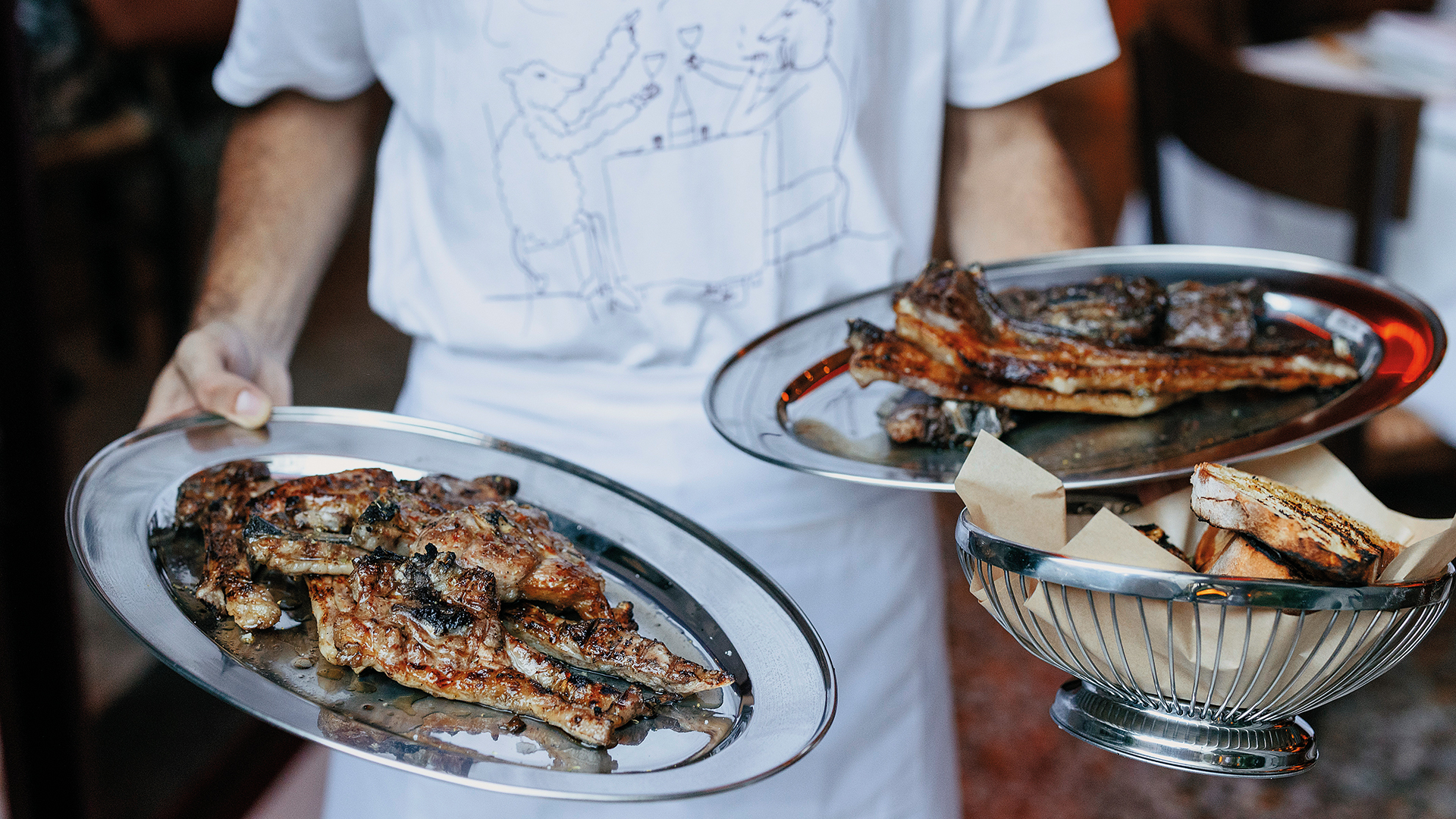 Και οι τρεις από τις πιο δημοφιλείς κατηγορίες street food εκπροσωπούνται επάξια στην πλατεία Αγίων Θεοδώρων. Το Odori είναι γνωστό τόσο για τα περιποιημένα aperitivi και τα σπιτικά βερμούτ του, όσο και για τη λεπτοκαμωμένη του πίτσα με το χειροποίητο ζυμάρι. Μη χάσετε την καυτερή Kamikaze με σάλτσα από ντοματίνια San Marzano, μοτσαρέλα, nduja (καυτερό ιταλικό λουκάνικο), φρέσκο βασιλικό και μέλι με τσίλι. Αν πάλι έχετε όρεξη για πληθωρικά μπέργκερ, στο Juicy Grill θα τα βρείτε σε ένα σωρό παραλλαγές. Όλες τους, πάντως, φτιάχνονται με φρέσκο μοσχαρίσιο κιμά, χειροποίητες σάλτσες και αφράτο ψωμάκι μπριός. Το Ari Gold, με μοσχαρίσιο μπιφτέκι, σοταρισμένα μανιτάρια, καραμελωμένα κρεμμύδια, κατσικίσιο τυρί και μαγιονέζα με δεντρολίβανο, είναι best seller, το ίδιο και οι κροκέτες που κρύβουν μέσα τους mac ’n’ cheese. Τέλος, όσοι δεν αλλάζουν με τίποτα το σουβλάκι δεν έχουν παρά να περάσουν μια βόλτα από την Κάψα, που υπογράφει και πάλι ο Χριστόφορος Πέσκιας, προτείνοντας και κλασικό τυλιχτό, αλλά και λίγο (τόσο όσο) πιο ευφάνταστο. Τη διαφορά κάνει ο γύρος, που ψήνεται σε ειδική κατασκευή με ράφια γεμάτα πυρωμένα κάρβουνα, αλλά και οι σπιτικές σάλτσες, όπως η «κερατένια» από πράσινες φλογερές πιπεριές κέρατο, κόλιανδρο, μαϊντανό και ελαιόλαδο ή το «κυπριακό pico de gallo» με ψιλοκομμένο κρεμμύδι, ντομάτα, μαϊντανό και λεμόνι.