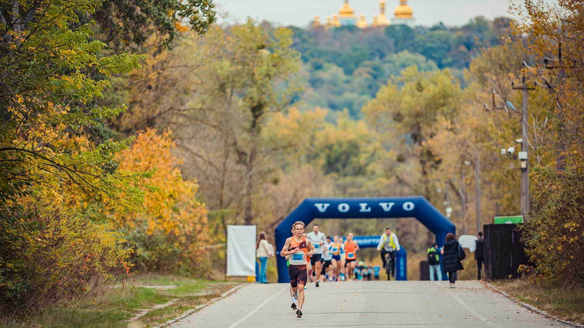 τως, την ώρα του αγώνα δεν φοβόμουν, δεν ξέρω γιατί, αφοσιώθηκα στον αγώνα, όλοι ήταν έτσι. Ο μαραθώνιος είναι μια εκδήλωση που έρχονται αρκετοί ξένοι, γι’ αυτό και πίστευα ότι θα τον προστάτευαν ακόμα περισσότερο· όλα έδειχναν πολύ ομαλά. Η διαδρομή ήταν πολύ ωραία. Το Κίεβο είναι, γενικά, μία όμορφη πόλη με μεγάλα καθαρά πεζοδρόμια και δρόμους, περιποιημένα κτίρια, και από άποψη φυσικής ομορφιάς έχει λόφους, το Δνείπερο, πάρκα, πράσινο, και νησιά μέσα στο ποτάμι. Τρέξαμε στο νησί Τρουχάνιφ και στη δεξιά όχθη, χρειάστηκε επίσης να περάσουμε και από αρκετές γέφυρες, μια εκ των οποίων είχε βομβαρδιστεί από τους Ρώσους το 2022 αλλά ξαναχτίστηκε. Πέρα από ένα λεπτό σιγής για τα θύματα του πολέμου πριν την εκκίνηση, κάποιες σημαίες στρατιωτικών μονάδων που κουβαλούσαν δρομείς, και μία θέση μάχης σε μία γέφυρα, θα νόμιζες ότι ήσουν σε κάποιον οποιοδήποτε μαραθώνιο ευρωπαϊκής πρωτεύουσας.