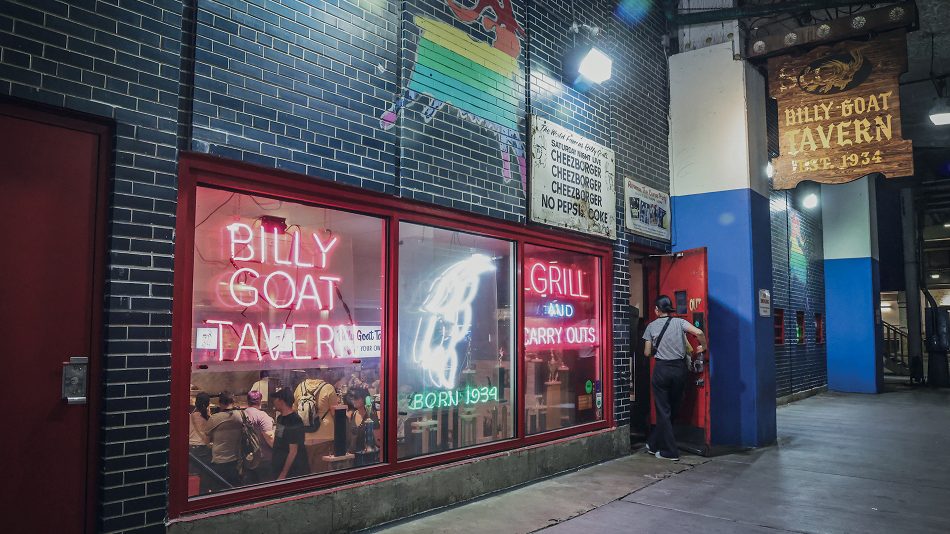 Η λεωφόρος Μίσιγκαν είναι ένας από τους ομορφότερους δρόμους του Σικάγο, με εντυπωσιακούς ουρανοξύστες που ξεκινούν από την εποχή της αρ ντεκό και φτάνουν μέχρι τον πεντάστερο πύργο-ξενοδοχείο του Ντόναλτ Τραμπ. Περπατώντας στα φαρδιά, δεντροφυτεμένα της πεζοδρόμια, συναντάς κάποιες από τις ακριβότερες μπουτίκ της πόλης – δεν είναι άλλωστε τυχαίο που το παρατσούκλι της συγκεκριμένης γειτονιάς είναι «Μεγαλοπρεπές Μίλι». Υπάρχει, ωστόσο, ένα παράλληλο σύμπαν που κρύβεται κάτω από τη λαμπερή λεωφόρο, και αυτό το ανακαλύπτεις όταν κατεβαίνεις τα σκαλιά που οδηγούν στο χαμηλότερό της επίπεδο. Αποκαλύπτεται ξαφνικά μπροστά σου μια πελώρια υπογειοποιημένη διασταύρωση. Αυτό που τραβάει την προσοχή μέσα στο σκοτάδι είναι οι νοσταλγικές επιγραφές από νέον στα παράθυρα ενός ημιυπόγειου μαγαζιού στα δεξιά. Πρόκειται για το Billy Goat Tavern, ένα ζωντανό κομμάτι της ιστορίας των Ελλήνων του Σικάγο, το φαγάδικο που εγκαινίασαν το 1964 ο Βασίλης Σιάνης και ο ανιψιός του, Σωτήρης, μετανάστες από τον Παλιόπυργο Αρκαδίας.
