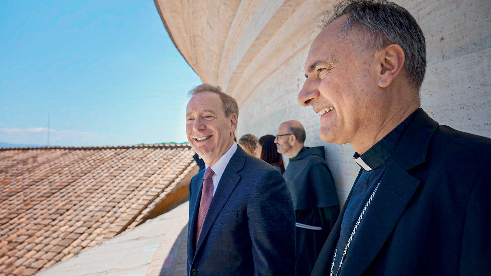 Αυτό ήταν ένα από τα πράγματα που με έκαναν να ενδιαφερθώ τόσο πολύ γι’ αυτό εδώ το έργο. Όλα άρχισαν το 2018, όταν επισκέφθηκα για πρώτη φορά το Βατικανό και συνάντησα τον Πάπα Φραγκίσκο. Τότε, είχα την ευκαιρία να επισκεφθώ τη βιβλιοθήκη. Το βιβλίο που με εντυπωσίασε περισσότερο ήταν ένας τόμος με επιστολές που έστειλε ο Γαλιλαίος στον Πάπα της εποχής. Ο Γαλιλαίος βρισκόταν σε κατ’ οίκον περιορισμό. Και η Εκκλησία τον είχε φυλακίσει λόγω των προόδων του στην τεχνολογία και την επιστήμη. Είχε χρησιμοποιήσει το τηλεσκόπιο και είχε καταλήξει στο συμπέρασμα ότι η Γη περιστρέφεται γύρω από τον ήλιο, και όχι το αντίθετο. Θα είμαι πάντα ευγνώμων απέναντι στην εταιρεία μας, που προσπαθεί πραγματικά να φέρει την τεχνολογία, την επιστήμη και την πίστη κοντά. Αυτό είναι κάτι που πιστεύω ότι είναι πολύ σημαντικό για μια εταιρεία όπως η Microsoft. Και να το κάνει όχι μόνο με την Καθολική Εκκλησία και το Βατικανό, αλλά και με άλλες θρησκείες. Τελείωσα την εβδομάδα στη Ρώμη με το Βατικανό. Την είχα ξεκινήσει στο Άμπου Ντάμπι. Είναι ενδιαφέρον το ότι υπάρχει ένα μέρος εκεί που ονομάζεται Αβρααμικός Οίκος και συγκεντρώνει τον Καθολικισμό ή τον Χριστιανισμό, τον Ιουδαϊσμό και το Ισλάμ. Προέκυψε από μια επίσκεψη του Πάπα Φραγκίσκου στο Άμπου Ντάμπι, όταν αποφάσισαν να δημιουργήσουν ένα μέρος που θα προωθούσε την καλύτερη κατανόηση μεταξύ των θρησκειών. Νομίζω ότι αυτό είναι κάτι στο οποίο μπορούμε να βασιστούμε και να το χτίσουμε, τόσο εδώ στη Ρώμη, όσο και αλλού.
