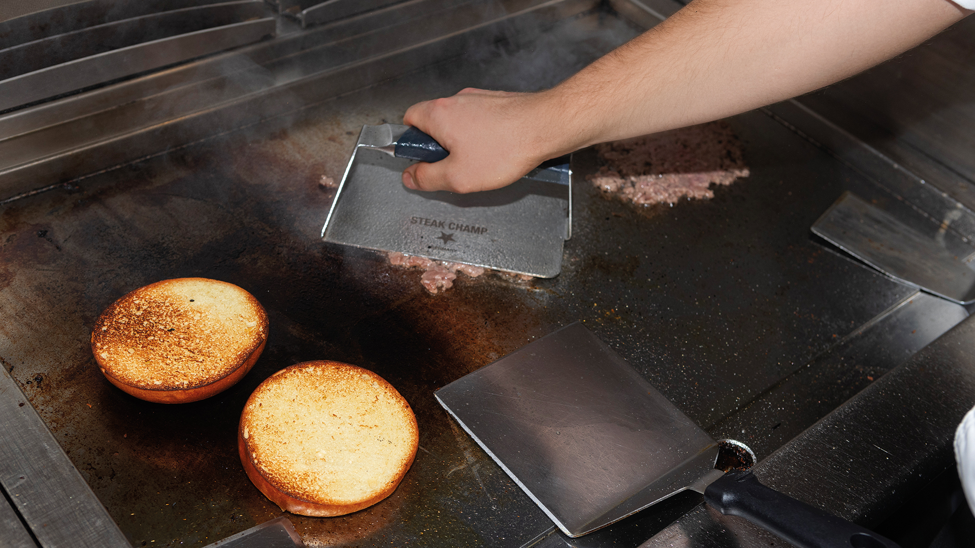 Αν η σκέψη και μόνο ενός smash μπέργκερ σάς κάνει να πεινάτε, υπάρχει ένας πολύ συγκεκριμένος λόγος που συμβαίνει αυτό. Όταν το μπιφτέκι πιέζεται δυνατά πάνω στο πλατό, η επιφάνειά του γίνεται πολύ λεπτή, με αποτέλεσμα το λίπος του κιμά να λιώνει και να απλώνεται. Έτσι, κάνει την εμφάνισή της η χαρακτηριστική καραμελωμένη δαντέλα γύρω γύρω, καθώς το υπόλοιπο κρέας μετατρέπεται σε μια επιφάνεια συμπυκνωμένης νοστιμιάς. Δεν χρειάζονται περιττές προσθήκες· λίγο αλάτι, πίκλες, ίσως κρεμμύδι και μια καλή σάλτσα είναι αρκετά για να το απογειώσουν. Η πρώτη δαγκωνιά από ένα καλοφτιαγμένο smash μπέργκερ αποδεικνύει του λόγου το αληθές: έντονη γεύση ψημένου μοσχαριού, τέλεια λιωμένο τυρί, ψωμάκι που συγκρατεί τα πάντα με ιδανικό τρόπο χωρίς να βαραίνει. Σύμφωνα με τον Τζορτζ Μοτζ, συγγραφέα του δημοφιλούς βιβλίου Hamburger America (2008), πρόκειται για μια τεχνική που πρωτοεμφανίστηκε τη δεκαετία του 1920 στα μικρά ντάινερ των μεσοδυτικών Ηνωμένων Πολιτειών, για να επιστρέψει δριμύτερη τα τελευταία δεκαπέντε χρόνια. Η Αθήνα δεν έμεινε πίσω σε αυτή την τάση. Τον τελευταίο καιρό, όλο και περισσότερα μαγαζιά ειδικεύονται στα smash μπέργκερ, εξελίσσοντας τις τεχνικές, τα υλικά και την τελειοποίηση του μπιφτεκιού. Μάλιστα, ακόμα και επαγγελματίες σεφ που προέρχονται από τη γαστρονομία του fine dining έχουν μπει στο παιχνίδι.