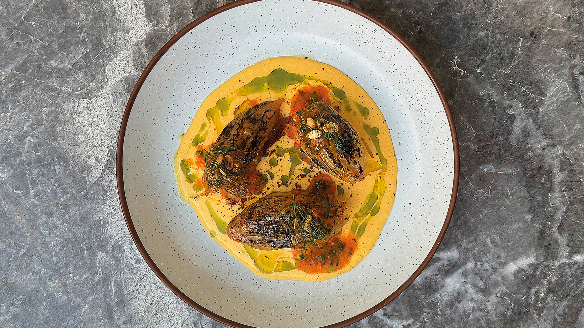 Στα του φαγητού, το Apiri λειτουργεί με έγνοια του τη δημιουργικότητα. Το μενού του είναι μικρό, μία σελίδα, αλλά οι επιλογές ενδιαφέρουσες, ένας κατάλογος με αρκετά παραδοσιακά πιάτα μαγειρεμένα με έναν βαθμό πρωτοτυπίας. Πήραμε ντοματοσαλάτα με μυρωδικά από τον κήπο τους –ένα χωράφι 16 στρεμμάτων, παράδεισος για κηπευτικά, βότανα και χόρτα– και γαλομυζήθρα από το νότιο Ρέθυμνο. Ανά εποχή ανανεώνεται η συνταγή της σαλάτας, με γλιστρίδα ή καυκαλήθρα, δίνοντας μια απρόσμενη διάσταση στο κλασικό πιάτο. Το καλό ελαιόλαδο, με τα έντονα πικάντικα στοιχεία, έδωσε έξτρα βάθος στη γεύση. Ένα πιάτο που οι ντόπιοι κοιτάζουν με αμφιθυμία είναι τα αυγά με στάκα και καραβίδες. Η συνταγή, βασισμένη σε μια πιο διεθνίζουσα κουζίνα, έρχεται σε τέλεια εκτέλεση: αυγουλάκια με πορτοκαλί κρόκο, βελούδινη στάκα και φρέσκες καραβίδες. Τα τσιπς από το τοπιναμπούρ ίσως είναι περιττά. Λερώσαμε χέρια και δάχτυλα βουτώντας το ωραίο ψωμί τους. Οι τηγανητές πατάτες υπήρχαν σε όλα τα τραπέζια, και στο δικό μας – μαγειρεμένες τρεις φορές, βραστές, ποσέ και έπειτα τηγανητές, με τέλεια κρούστα, σύμφωνα με τη συνταγή του Heston Blumenthal, την οποία ο Λαυρενίδης αποτύπωσε κατά τη θητεία του στο θρυλικό Fat Duck. Σερβίρονται με καπνιστή μαγιονέζα, ωστόσο είναι τόσο νόστιμες από μόνες τους, που θα προτιμούσαμε να λείπει το λιπαρό ντιπ. Νόστιμη κρούστα είχε και το κουνέλι, ένα παραδοσιακό έδεσμα της Κρήτης σε σύγχρονη ερμηνεία, φανταστείτε κάτι σαν chicken nuggets με κομματάκια από ζουμερό κρέας μαριναρισμένα σε buttermilk, με πίκλα κρεμμυδιού και μαγιονέζα καπνιστής πιπεριάς. Η σάλτσα θα μπορούσε να μπαίνει ως συνοδευτικό στο πλάι, για να μη μουσκεύει το ωραίο, κριτσανιστό περίβλημα.