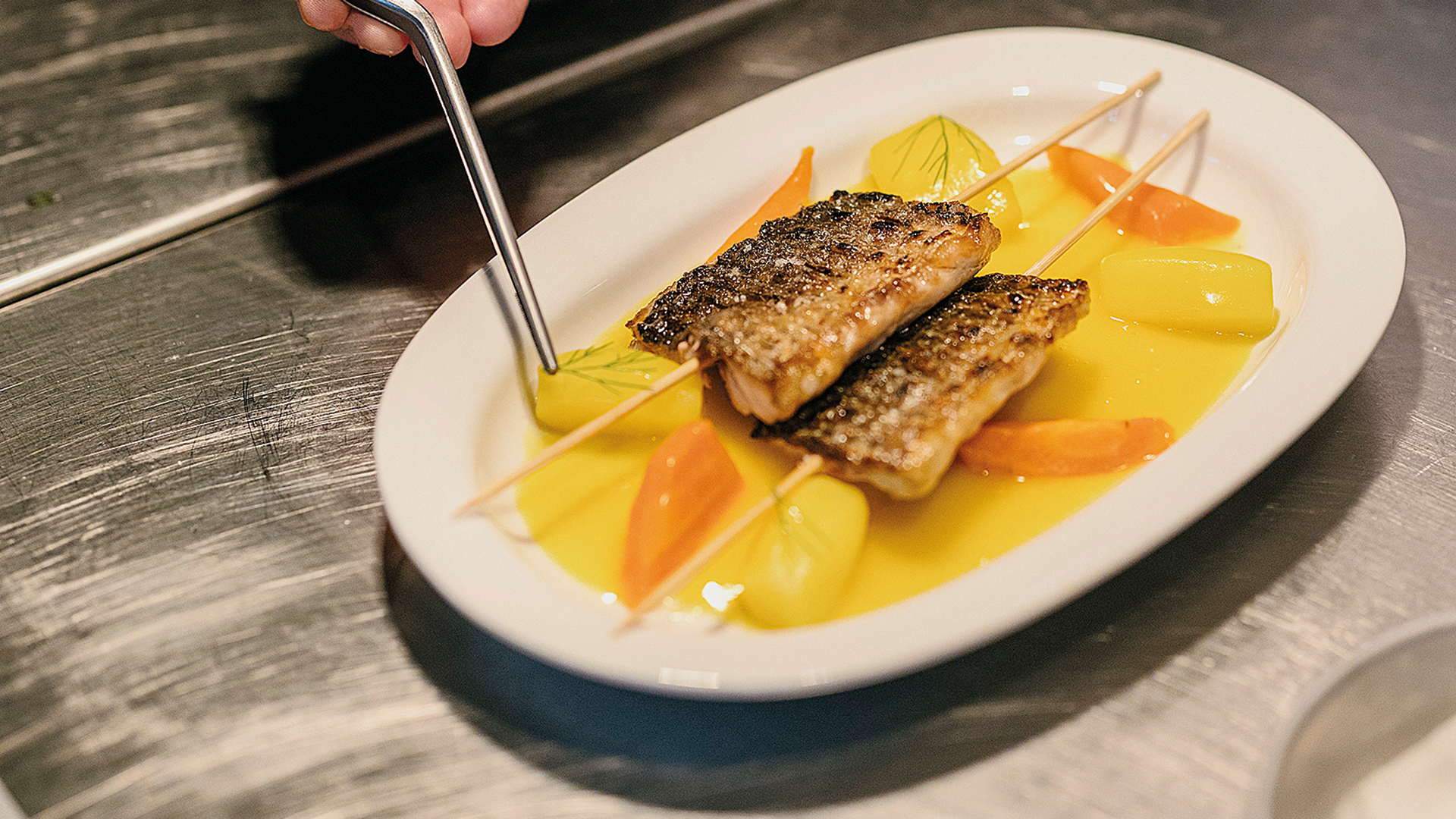 Στου Λου, το «μαγειρείο» του Κεραμεικού που άνοιξε τον χειμώνα, ένα από τα χαρακτηριστικά πιάτα είναι ο κόκορας αλανιάρης από τη Μονεμβασιά, με αρκαδικό χυλοπιτάκι και ξερή μυζήθρα από την Κεφαλονιά. Πιάτο πληθωρικό, μεστή γεύση, σωστά μπαχαρικά. Όπως όλα τα κυρίως, προσφέρεται και σε μισή μερίδα. Ξεχωρίζει και η γουρουνοπούλα, με τραγανή πέτσα, ζουμερό λίπος και τρυφερό κρέας από το αγρόκτημα Κελαϊδίτης στην Εύβοια, που συνοδεύεται με πικάντικο σιναπόσπορο για ισορροπία και ένταση. Το κρασί έχει κεντρικό ρόλο· το αποδεικνύει το κελάρι στο υπόγειο, με πάνω από 200 ετικέτες, που λειτουργεί και ως κάβα. Η λίστα δίνει έμφαση στον ελληνικό αμπελώνα, με επιλογές από άγνωστες ποικιλίες, αν και αρκετές ετικέτες είναι υπερκοστολογημένες. —Μ.Π.