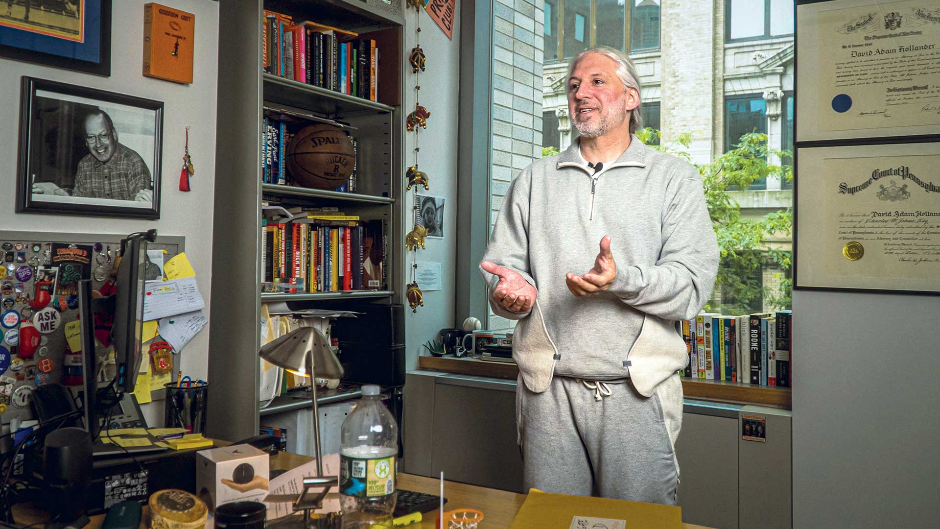 Ο Ντέιβιντ Χολάντερ έφτασε κάποια στιγμή μέχρι τα Ηνωμένα Έθνη για να καθιερώσει την ετήσια Παγκόσμια Ημέρα Μπάσκετ (21 Δεκεμβρίου). Δεν είναι απλώς ένας παθιασμένος φίλος του αθλήματος, αλλά ένας στοχαστής του παιχνιδιού. Για εκείνον, το μπάσκετ είναι μια πράξη εξύψωσης, μια ευκαιρία να σηκωθούμε λίγο ψηλότερα. Η σχέση του με το μπάσκετ ξεκίνησε πριν ακόμη γεννηθεί, όταν ο πατέρας του ασφαλτόστρωσε την αυλή του σπιτιού τους και κρέμασε στον τοίχο μια στεφάνη. Πολλά χρόνια αργότερα, ο Χολάντερ οραματίστηκε ένα μάθημα ανθρωπιστικών σπουδών στο Πανεπιστήμιο της Νέας Υόρκης, βασισμένο σε δεκατρείς αρχές – όσοι ήταν και οι αρχικοί κανόνες που έθεσε ο Τζέιμς Νέισμιθ το 1892, όταν εμπνεύστηκε το μπάσκετ.
